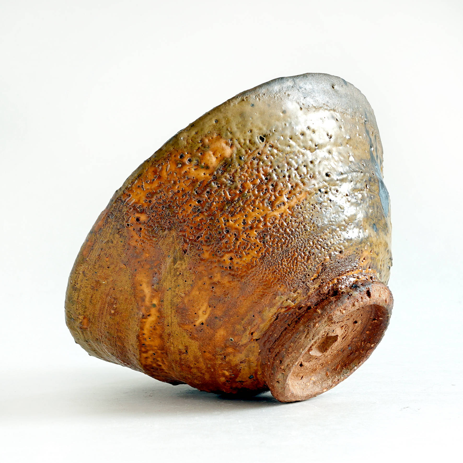 wheel thrown, several types of clay mixed with szamot , painted with fire and porcelain slip, natural ash glaze in wood fired kiln. temp. 1320C dimensions : ⌀ 16 cm , h 8 cm capacity 450 ml