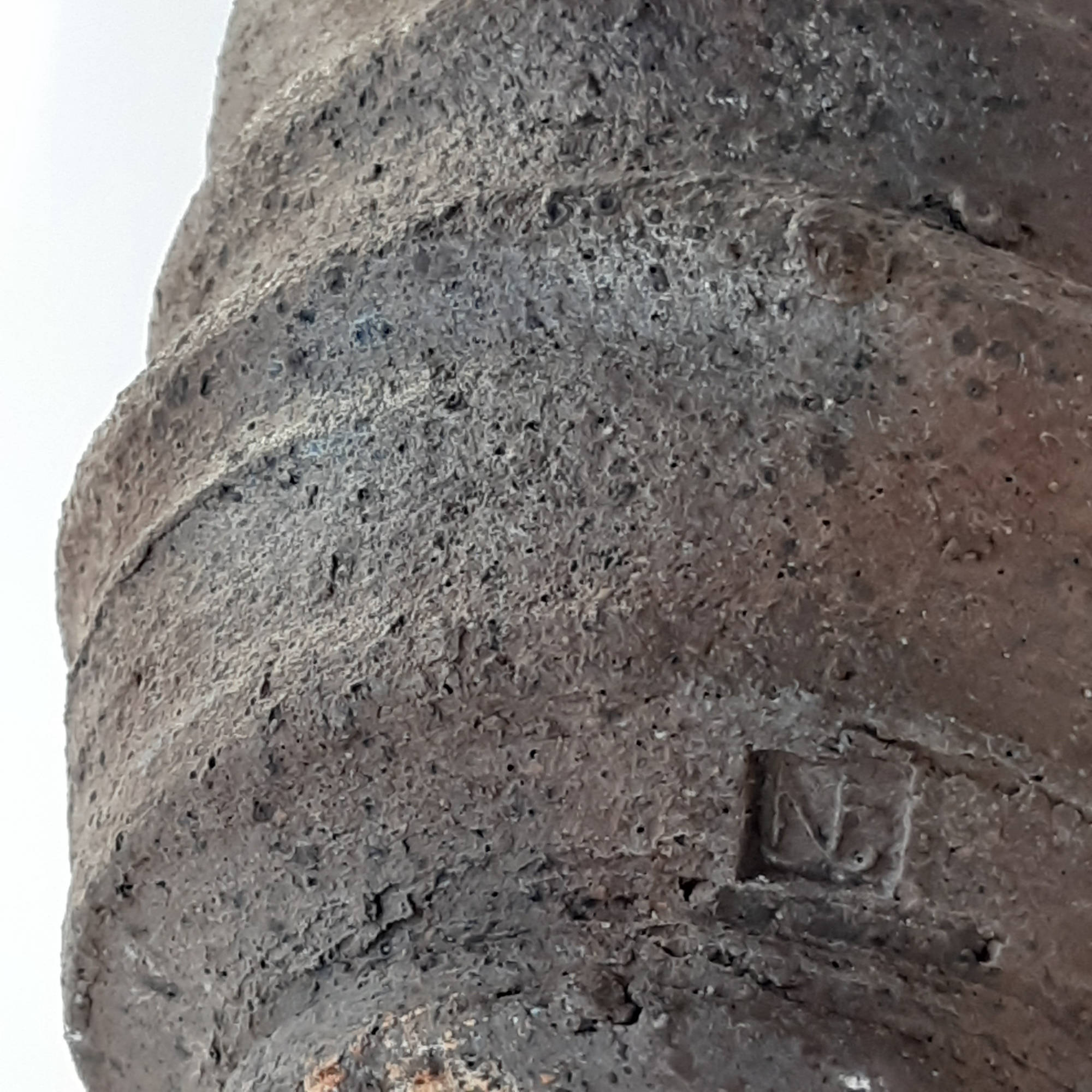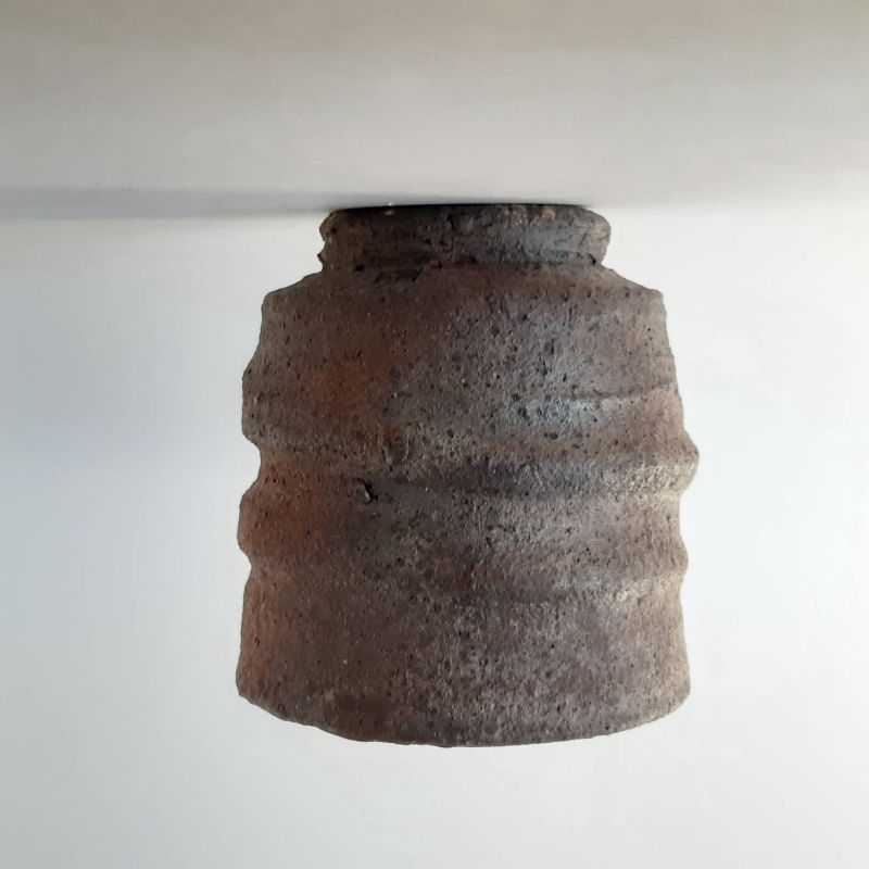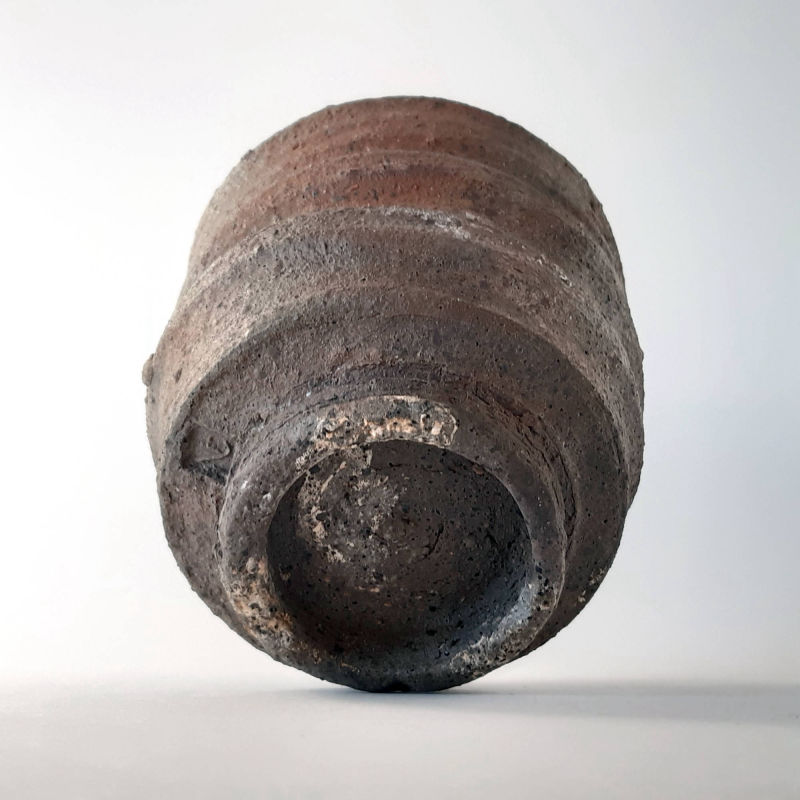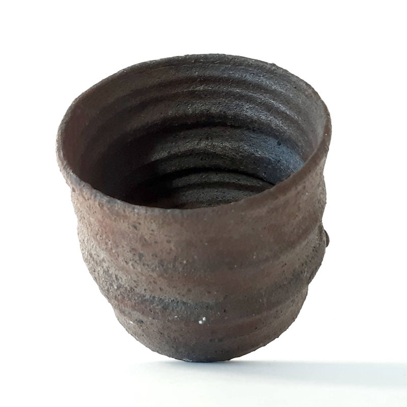 wheel thrown big mug, mix of several types of clay,painted with fire and natural ash glaze in a wood fired kiln. temp. 1350 st. C dimensions: ⌀ 11 cm; h 10 cm capacity: 0,4 l