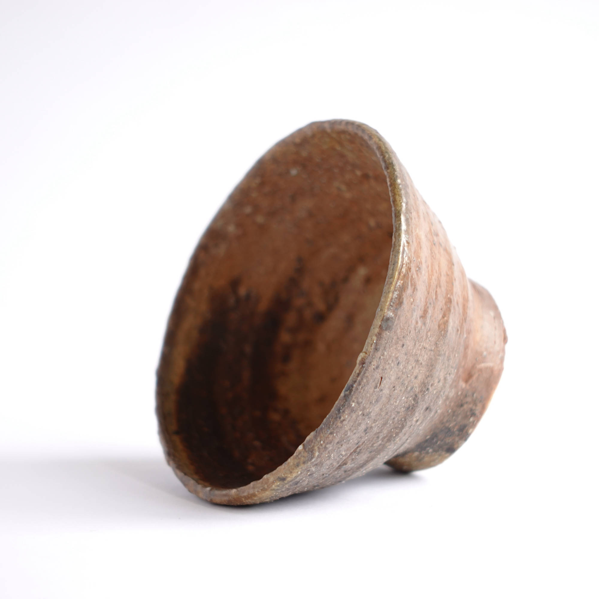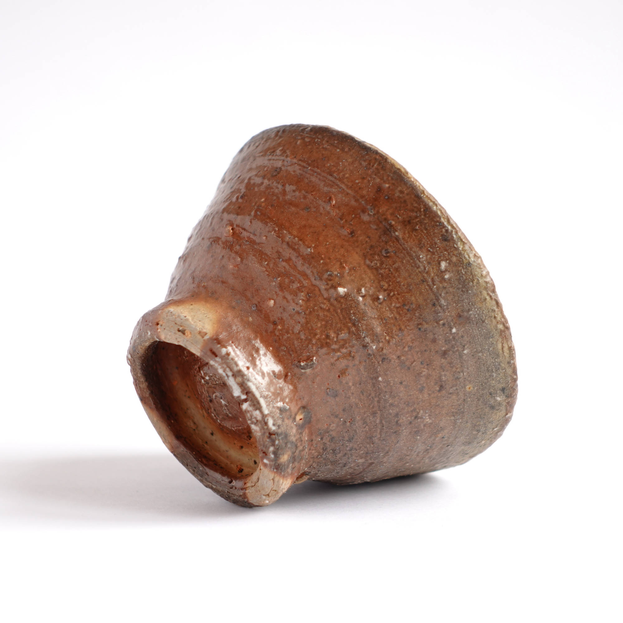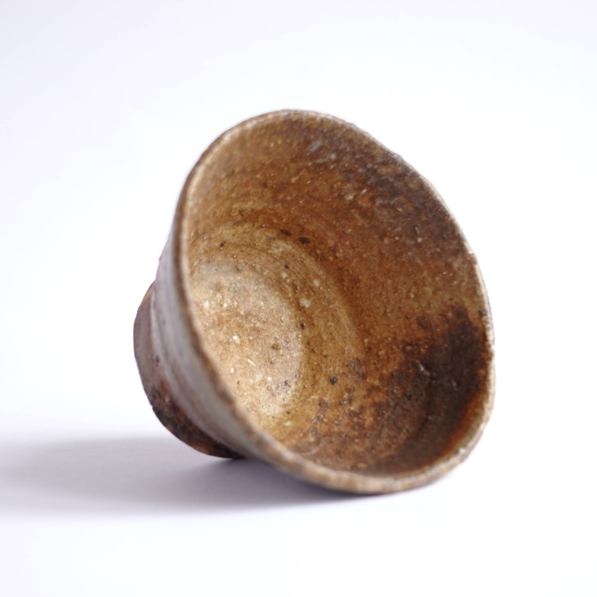 wheel thrown. several types of clay mixed with szamot , painted with fire and natural ash glaze in wood fired kiln. temp. 1320Cdimensions : ⌀ 8 cm , h 4,5 cmcapacity 80 ml