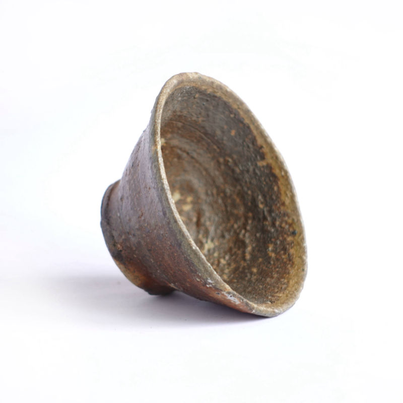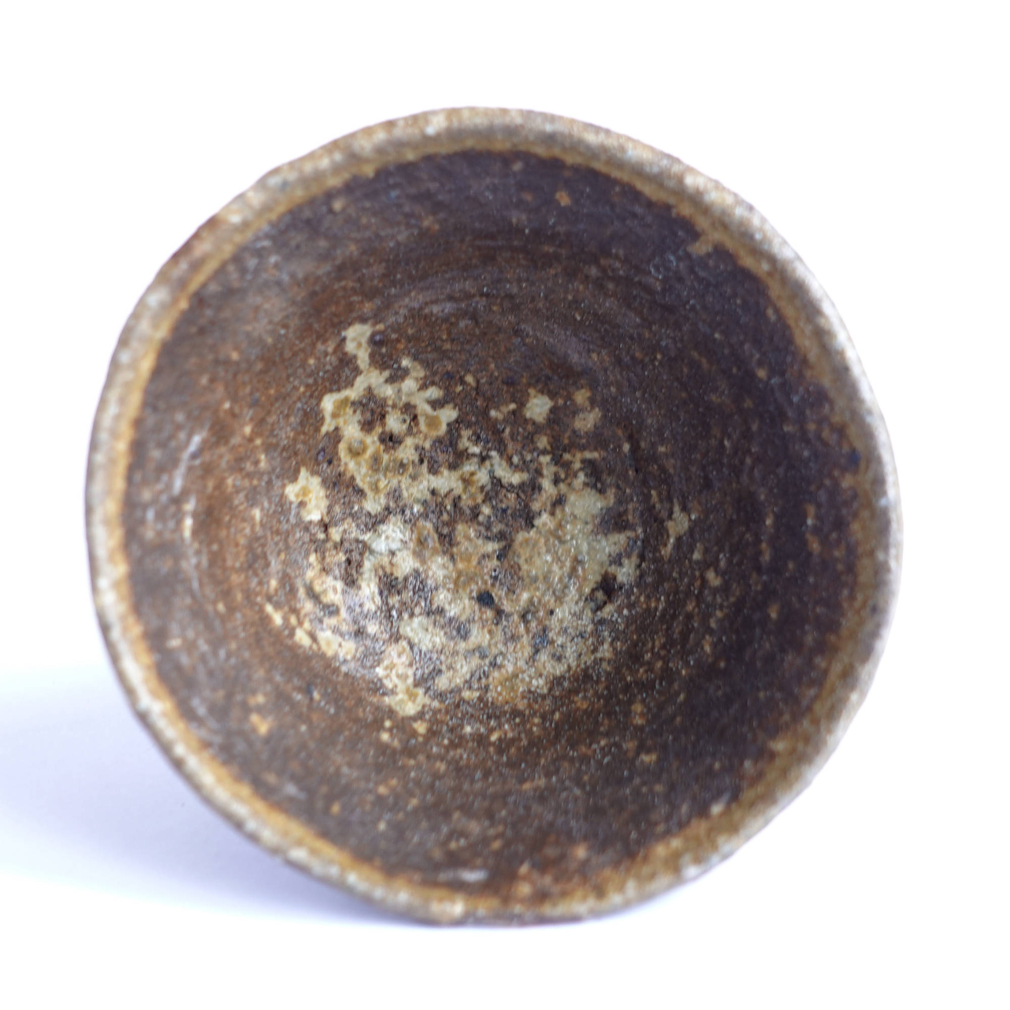 wheel thrown. several types of clay mixed with szamot , painted with fire and natural ash glaze in wood fired kiln. temp. 1320Cdimensions : ⌀ 8 cm , h 4,5 cmcapacity 80 ml