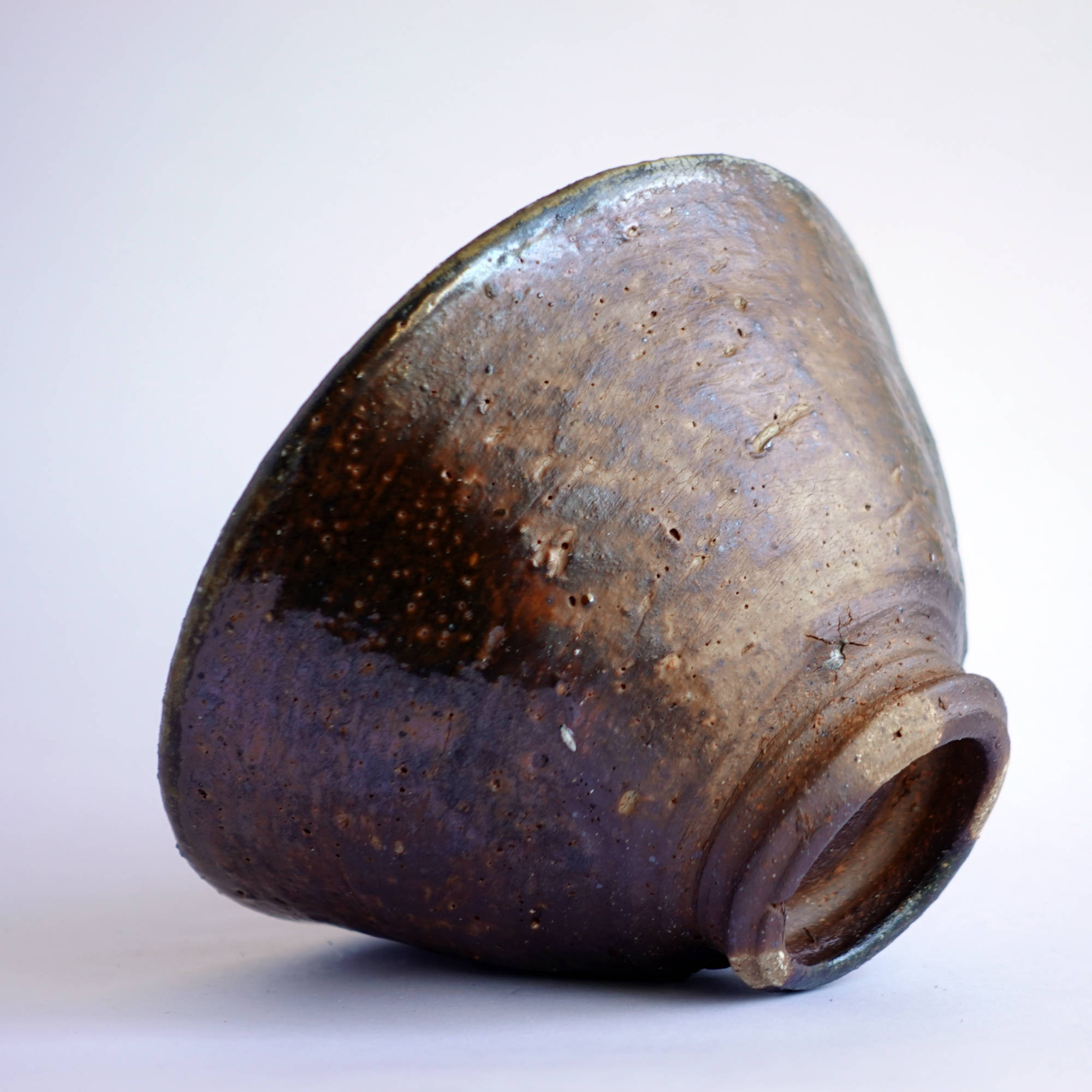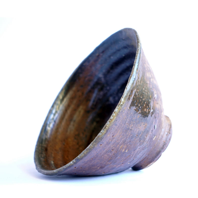 wheel thrown, several types of clay mixed with small szamot , painted with fire and porcelain slip, natural ash glaze in wood fired kiln. temp. 1320C dimensions : ⌀ 13,5 cm , h 7 cm capacity 320 ml
