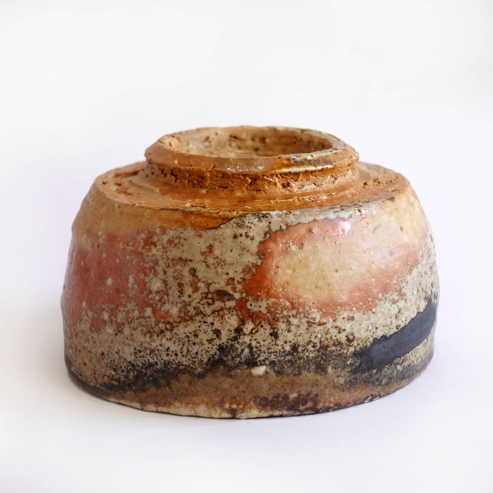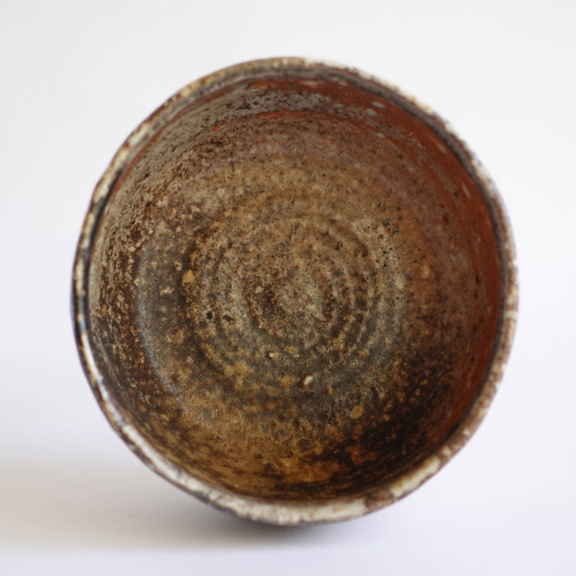 wheel thrown, several types of clay mixed with szamot , painted with fire and porcelain slip, natural ash glaze in wood fired kiln. temp. 1320C dimensions : ⌀ 12 cm , h 7,5 cm capacity 500 ml