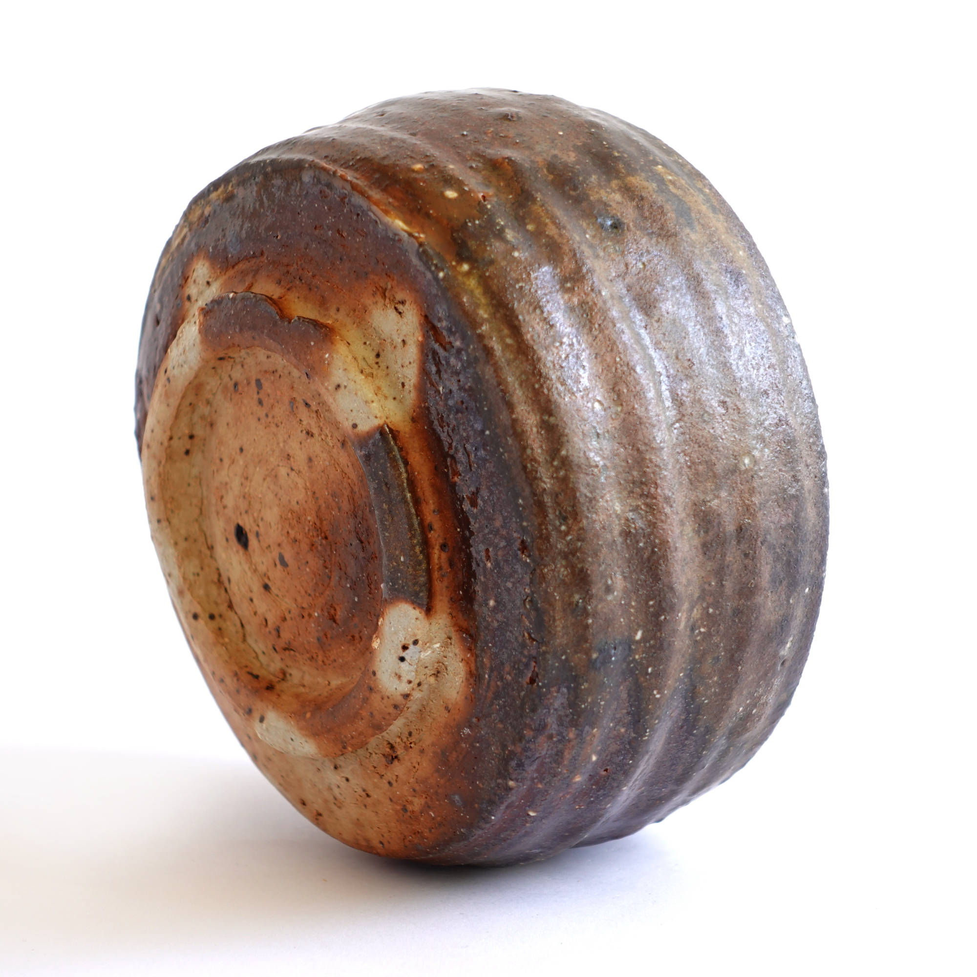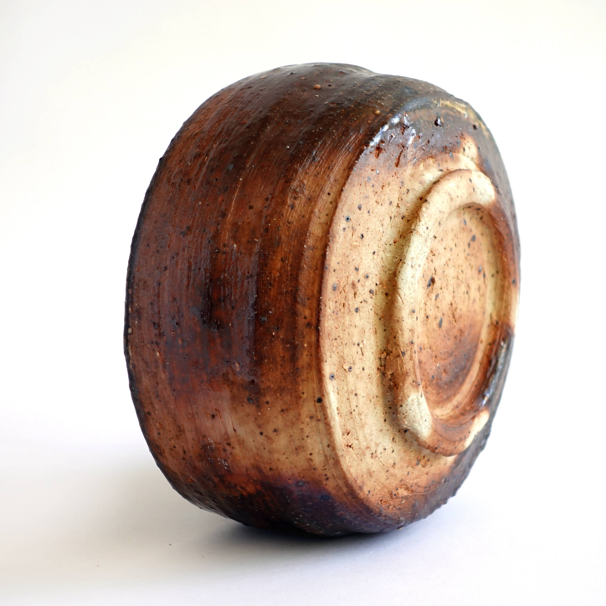 wheel thrown, several types of clay mixed with szamot , painted with fire and porcelain slip, natural ash glaze in wood fired kiln. temp. 1320C dimensions : ⌀ 12,5 cm , h 7 cm capacity 500 ml