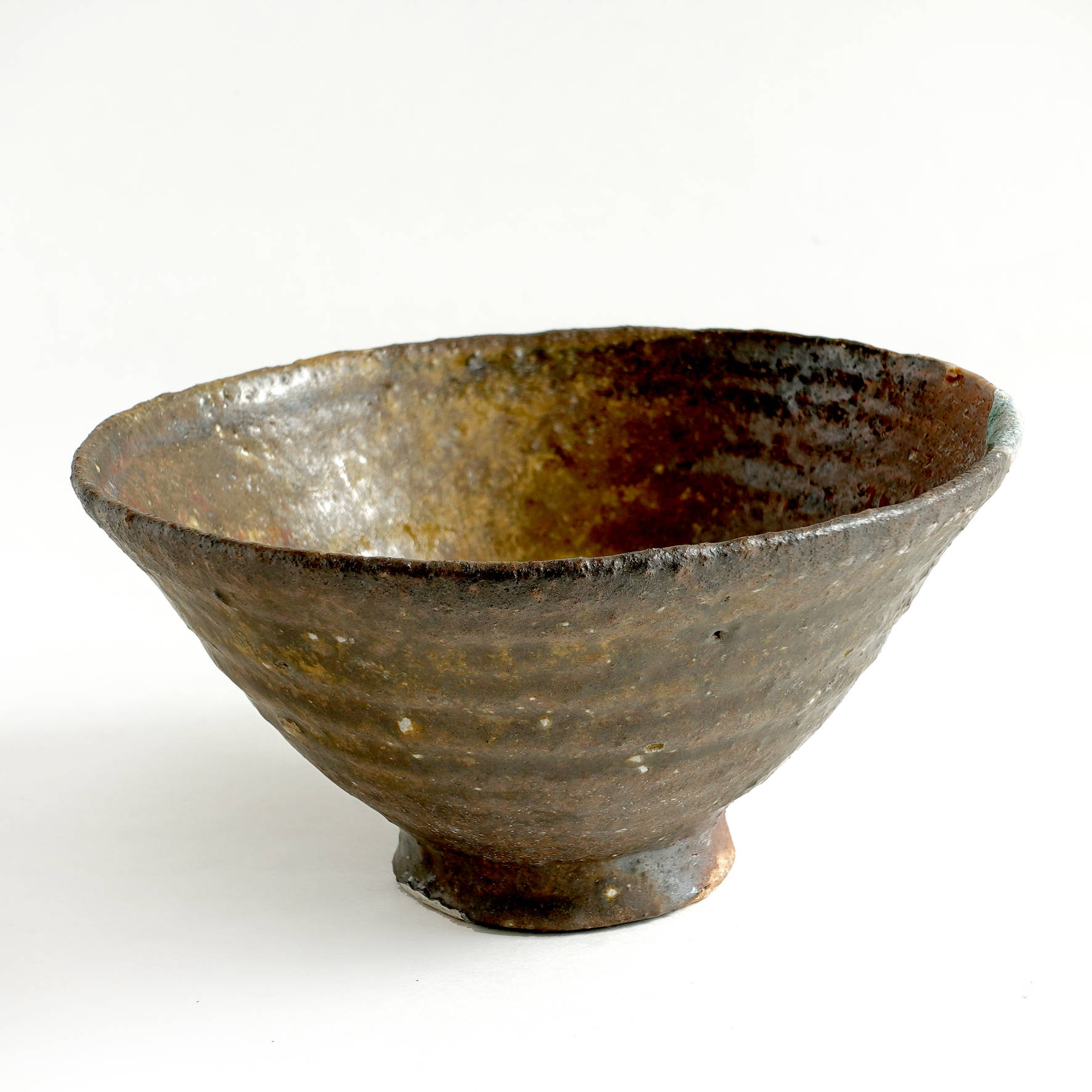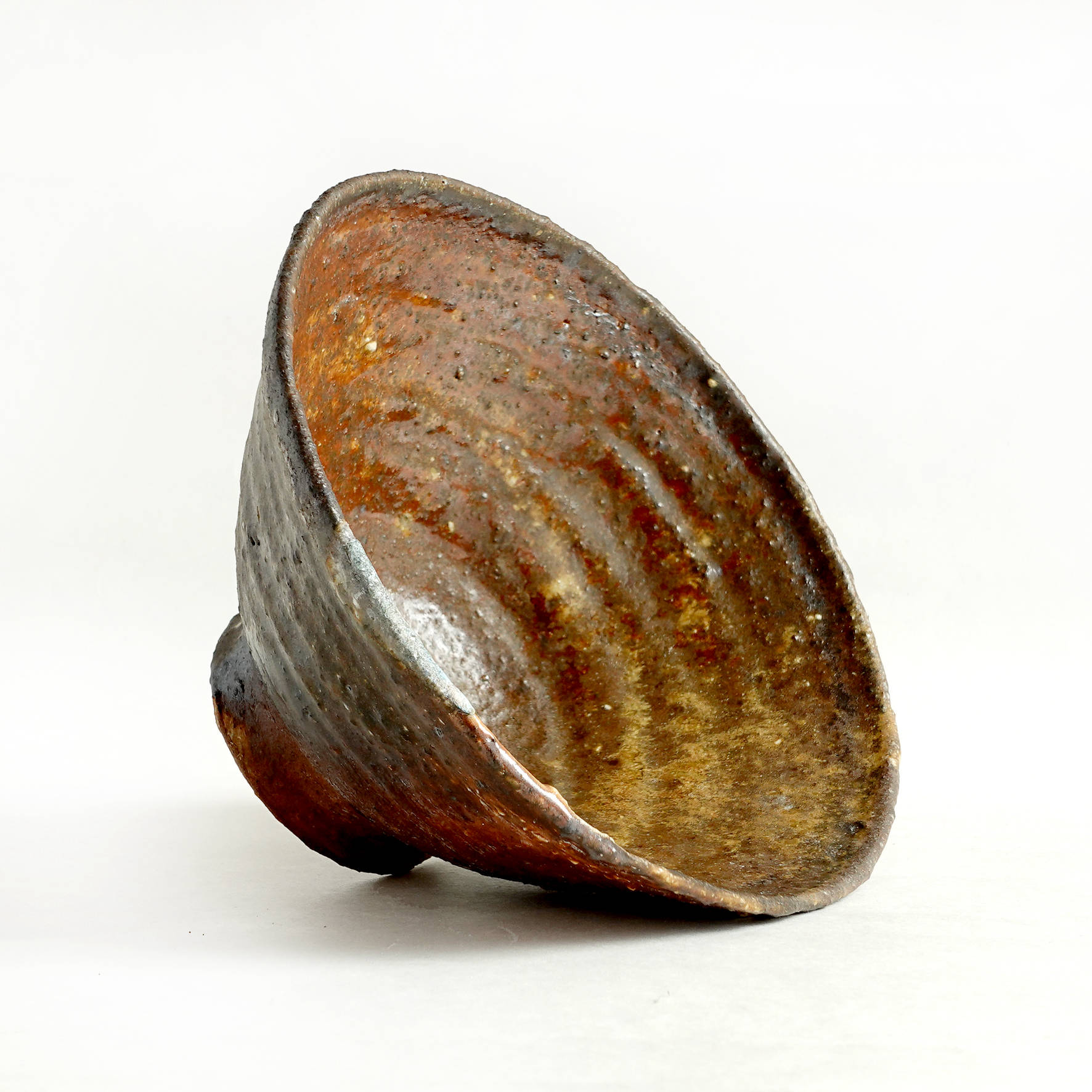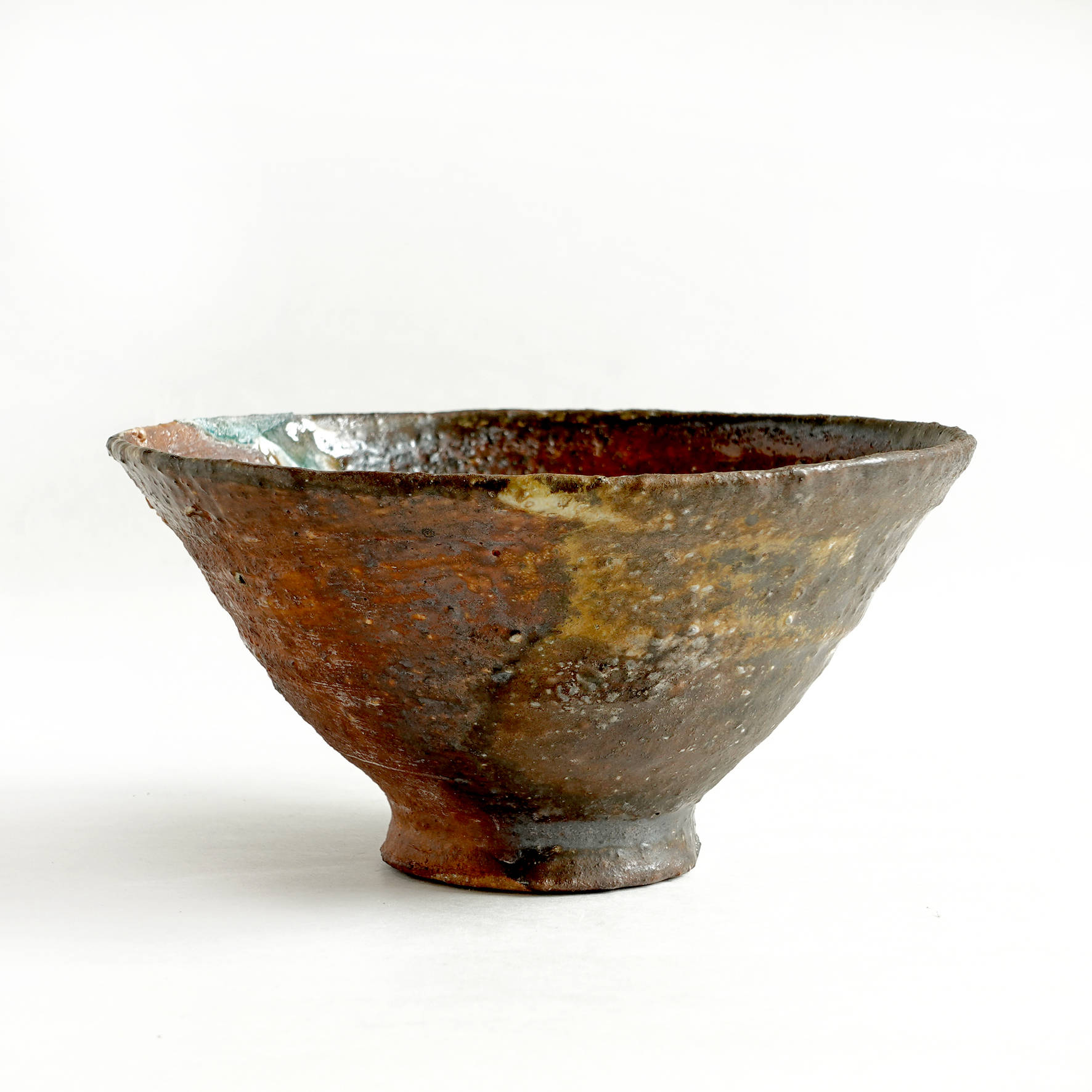 wheel thrown, several types of clay mixed with szamot , painted with fire and porcelain slip, natural ash glaze in wood fired kiln. temp. 1320C dimensions : ⌀ 16,5 cm , h 8,5 cm capacity 400 ml