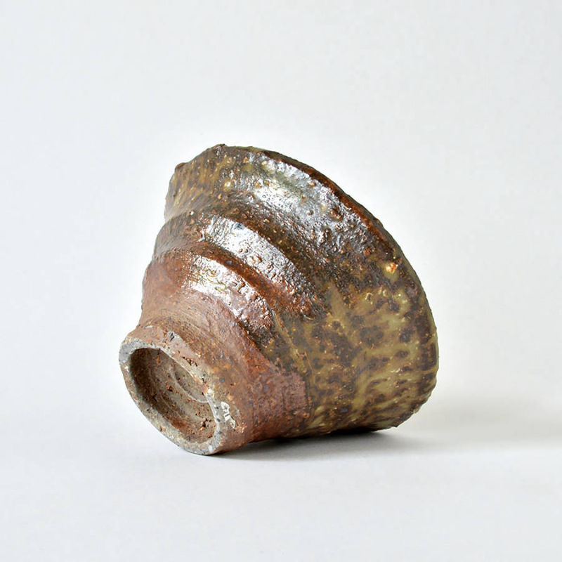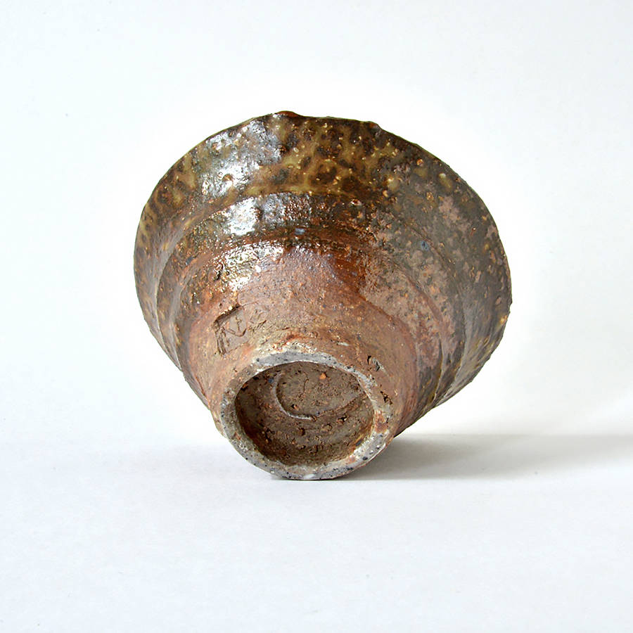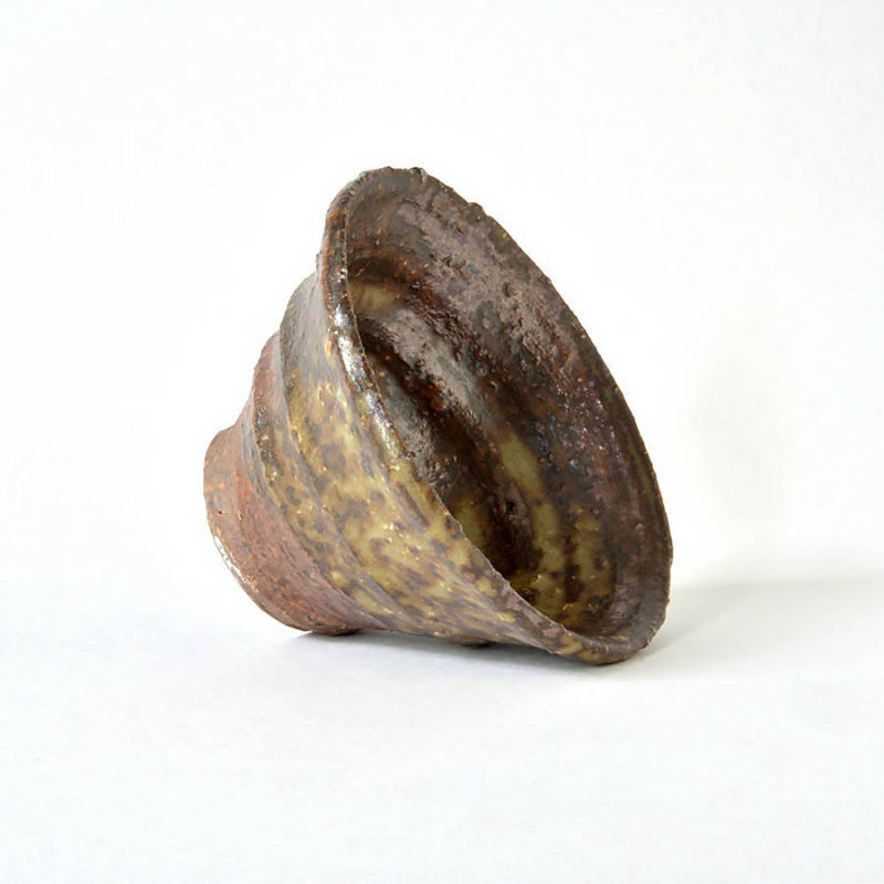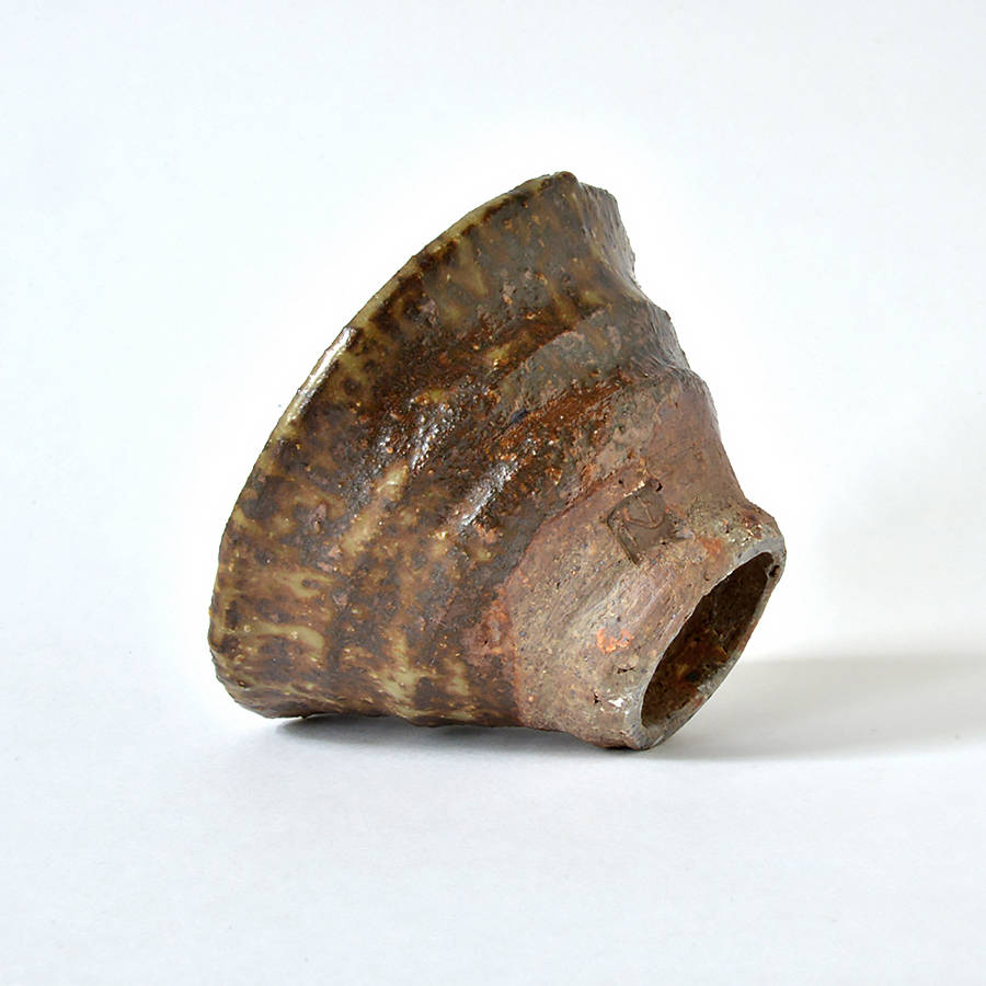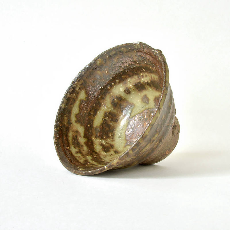 wheel thrownmix of several types of clay, with white slip, painted with fire and natural ash glazed in woodfired kiln. 1320 st. C dimensions: ⌀ 8,5 cm; h 4,5 cm capacity: 100 ml