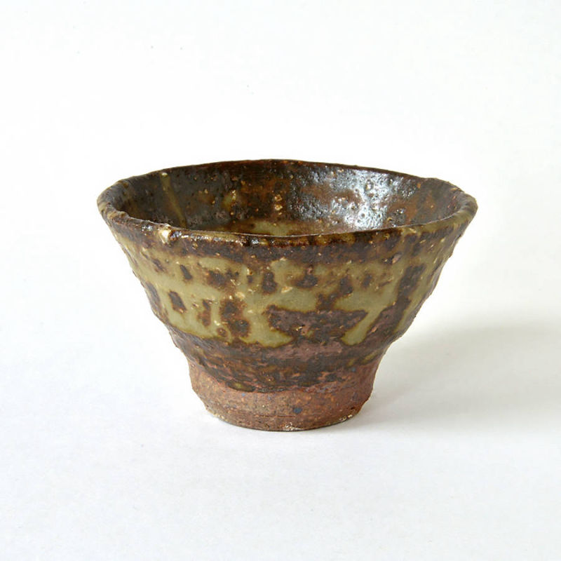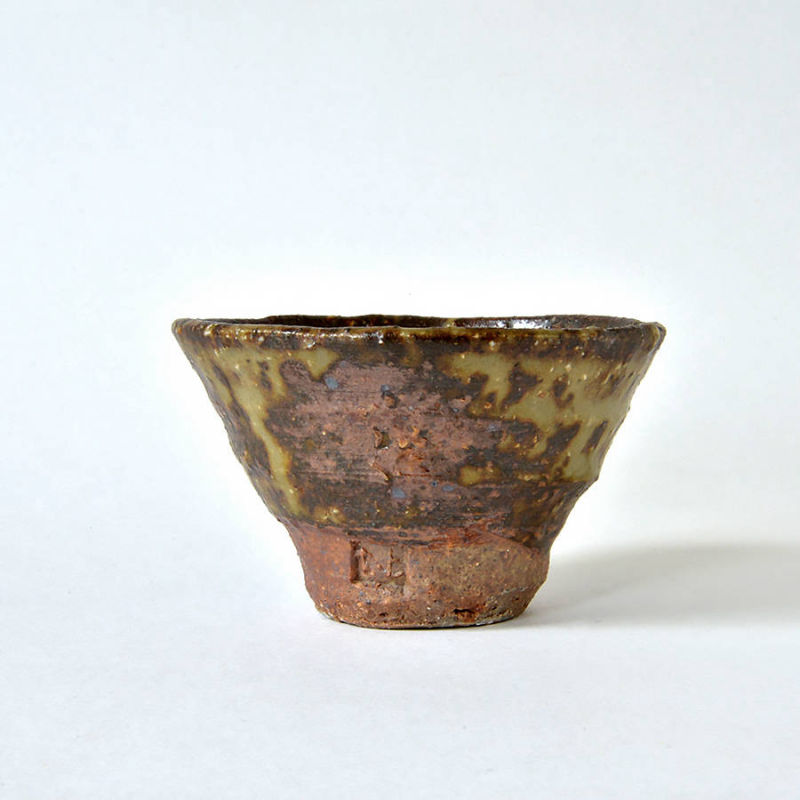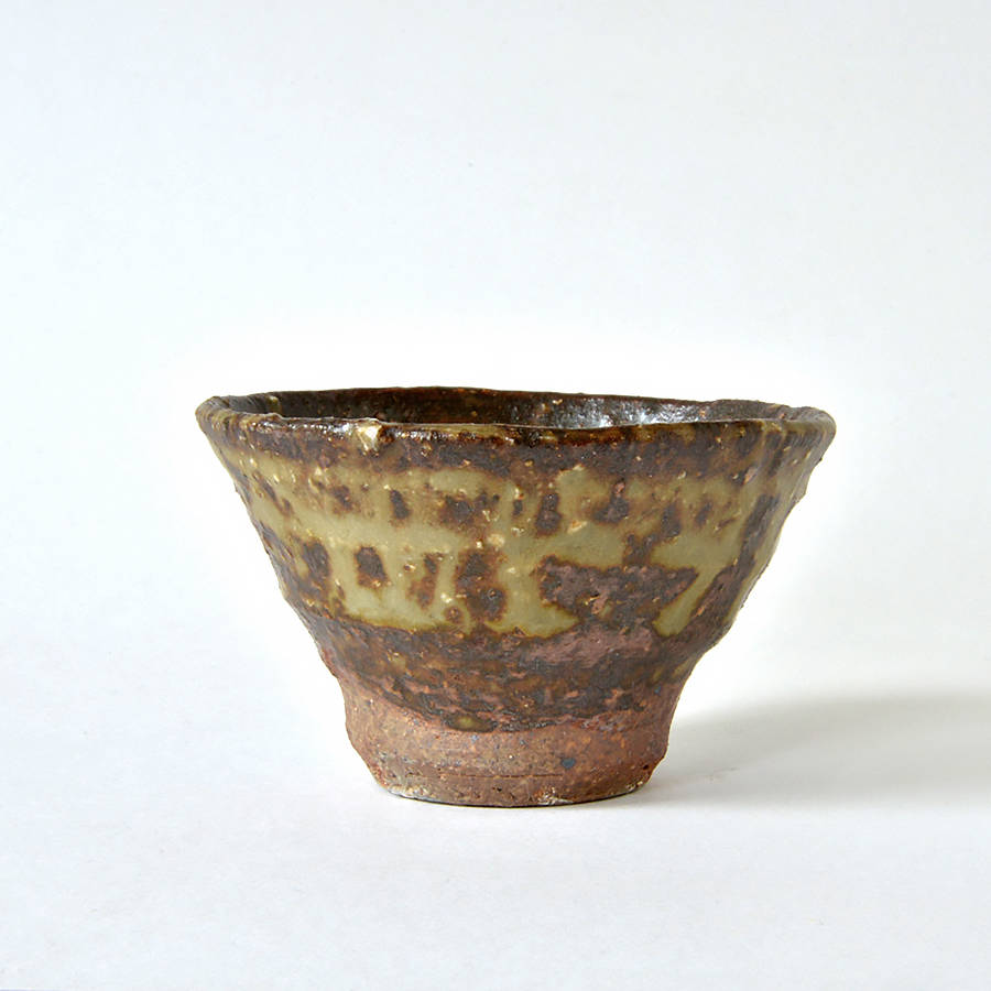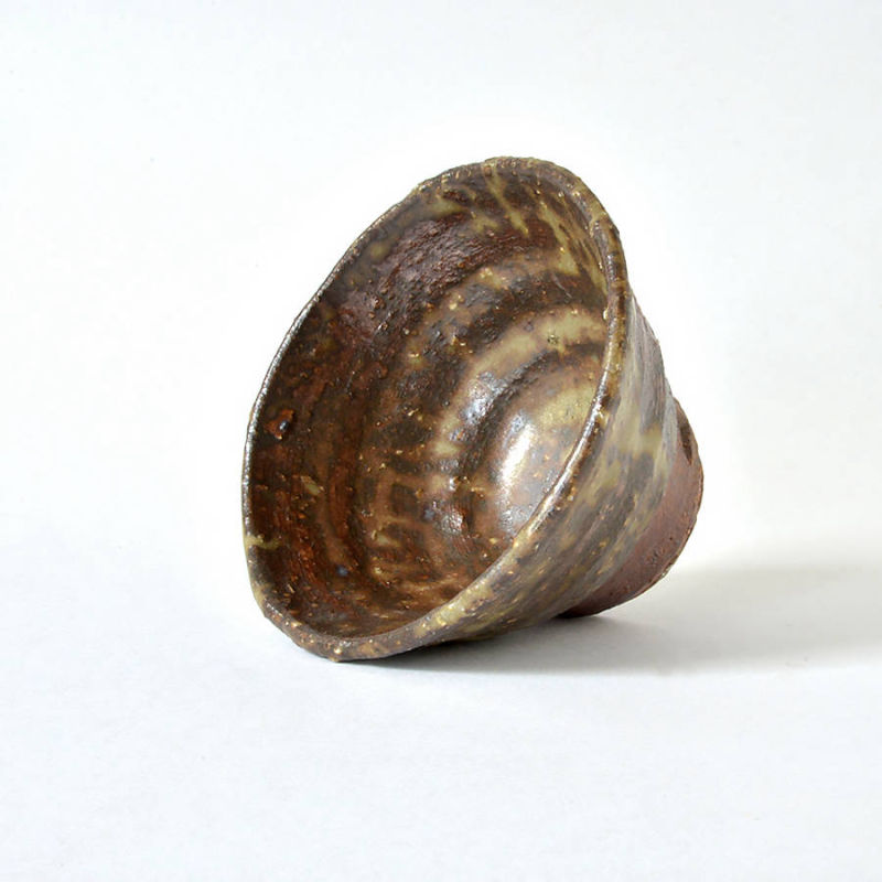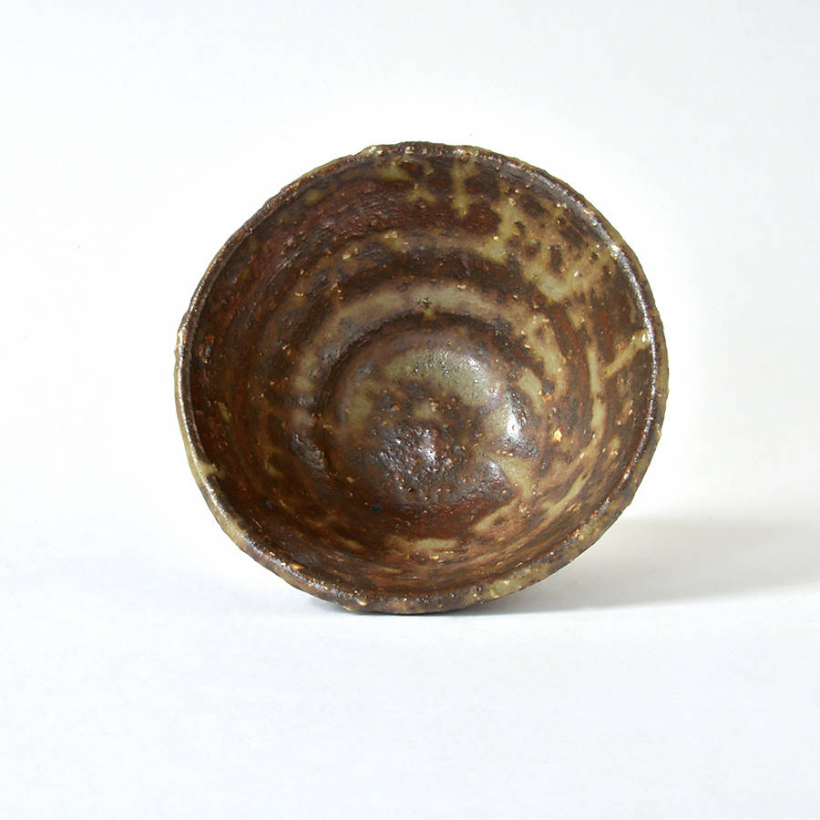 wheel thrownmix of several types of clay, with white slip, painted with fire and natural ash glazed in woodfired kiln. 1320 st. C dimensions: ⌀ 8 cm; h 4,5 cm capacity: 80 ml