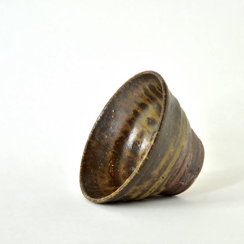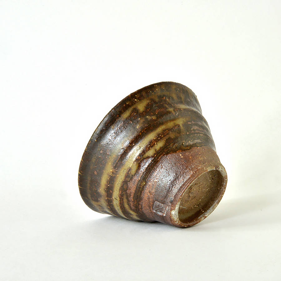 wheel thrownmix of several types of clay, with white slip, painted with fire and natural ash glazed in woodfired kiln. 1320 st. C dimensions: ⌀ 9,5 cm; h 5,5 cm capacity: 150 ml