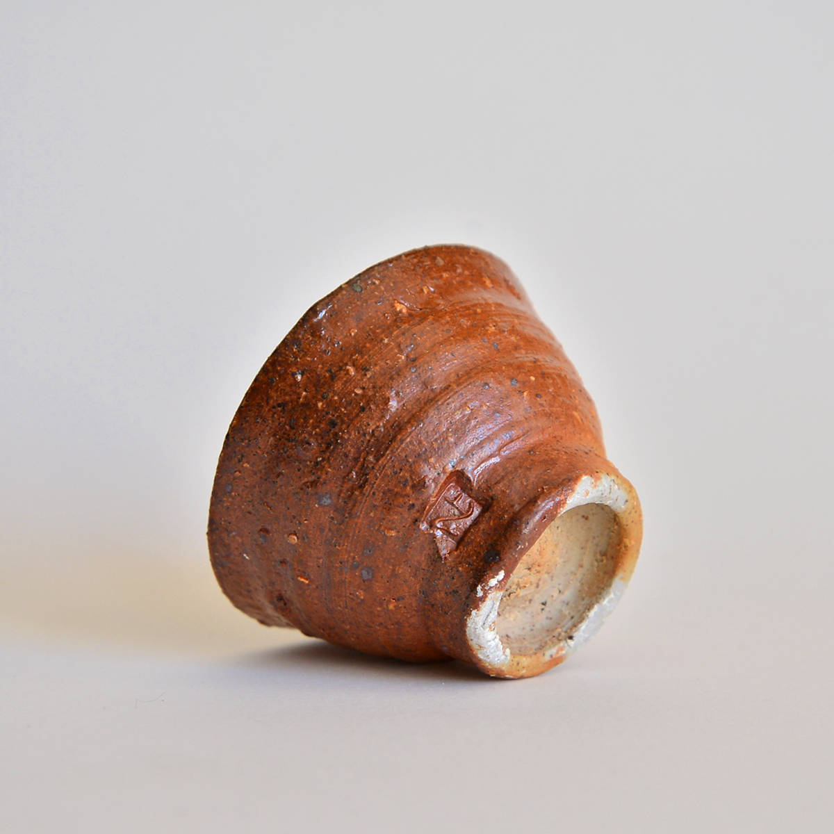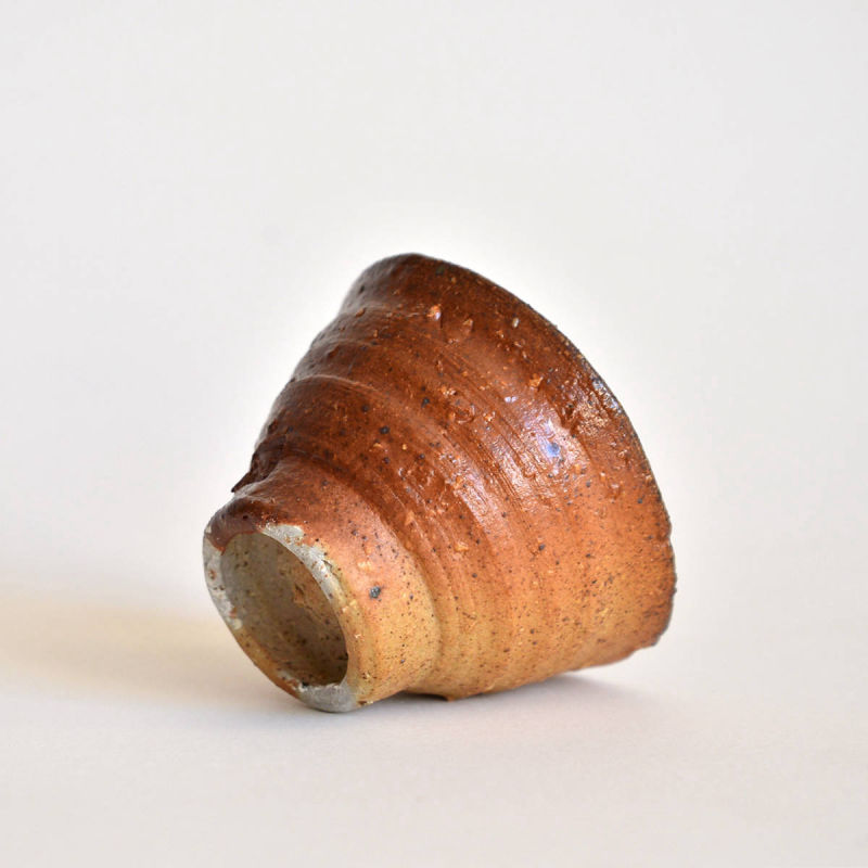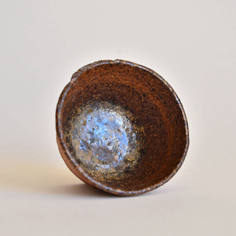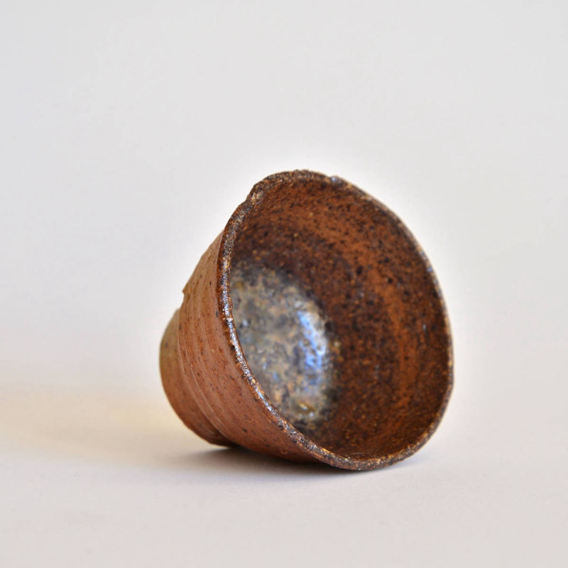 wheel thrownmix of several types of clay.painted with fire and natural ash glazed in woodfired kiln. 1320 st. C dimensions: ⌀ 8 cm; h 5 cm capacity: 80 ml