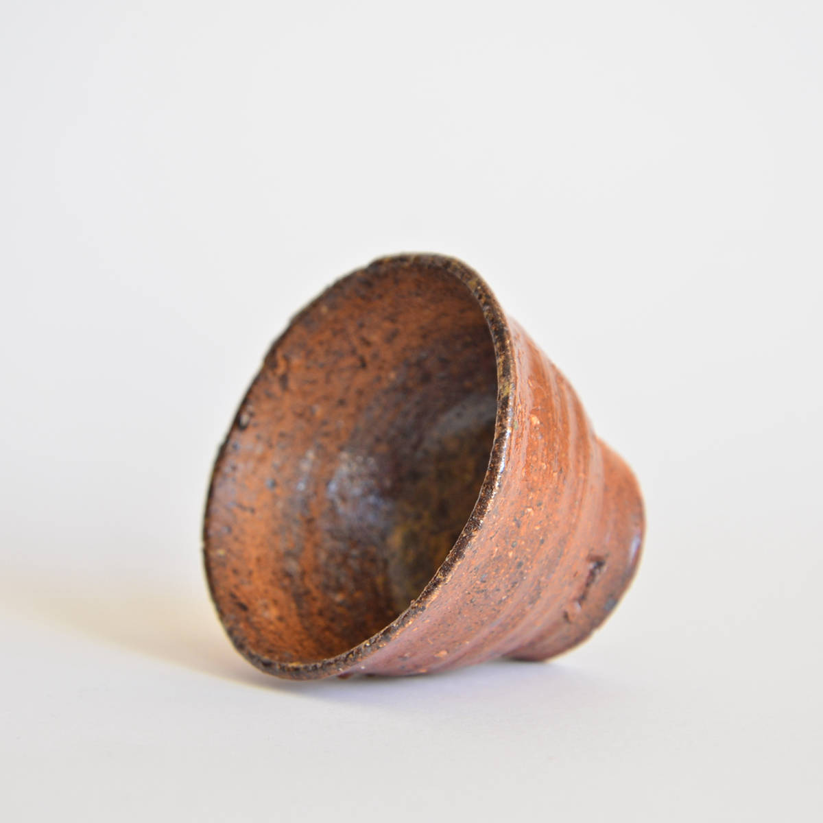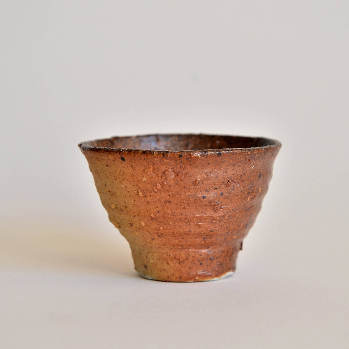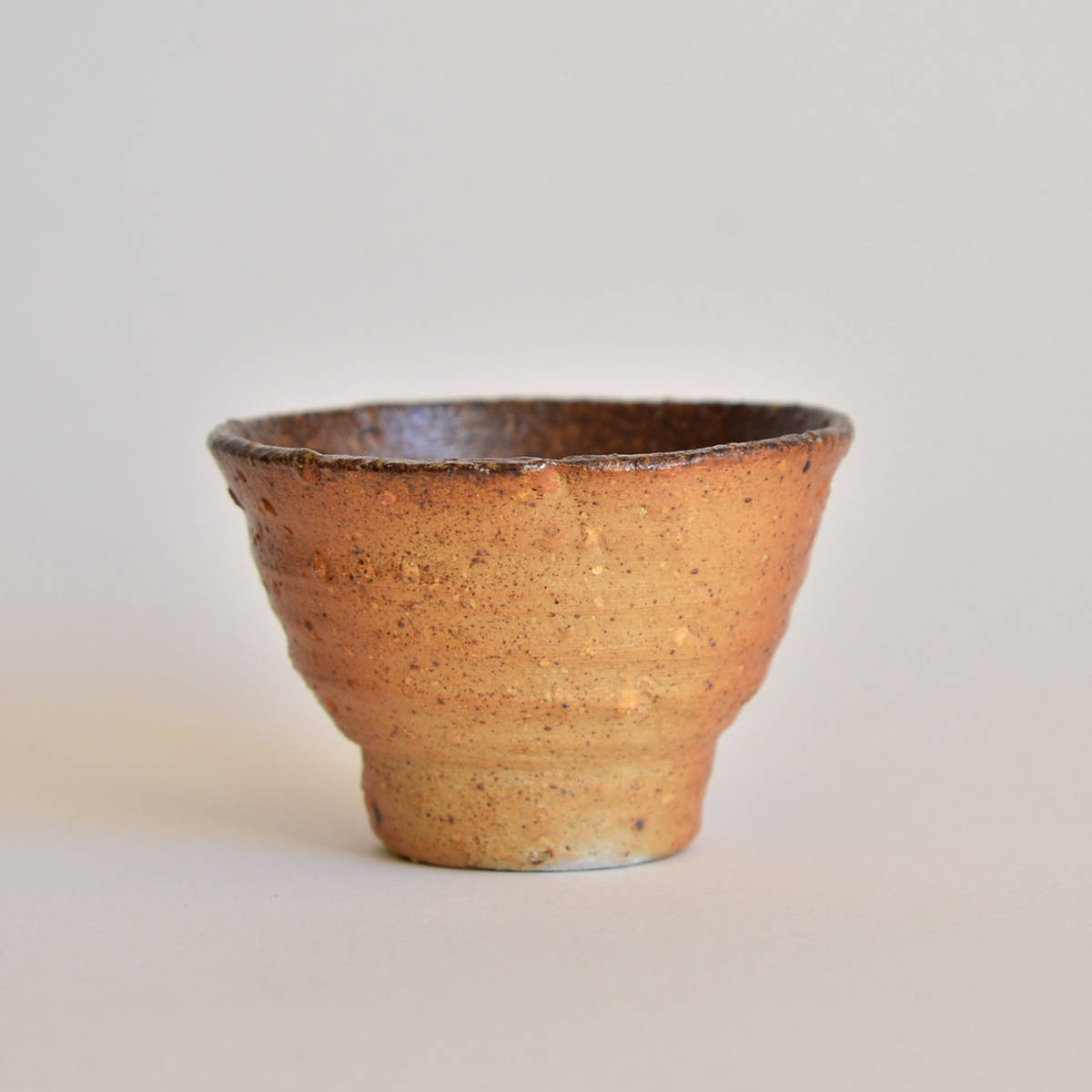 wheel thrownmix of several types of clay.painted with fire and natural ash glazed in woodfired kiln. 1320 st. C dimensions: ⌀ 8 cm; h 5 cm capacity: 80 ml