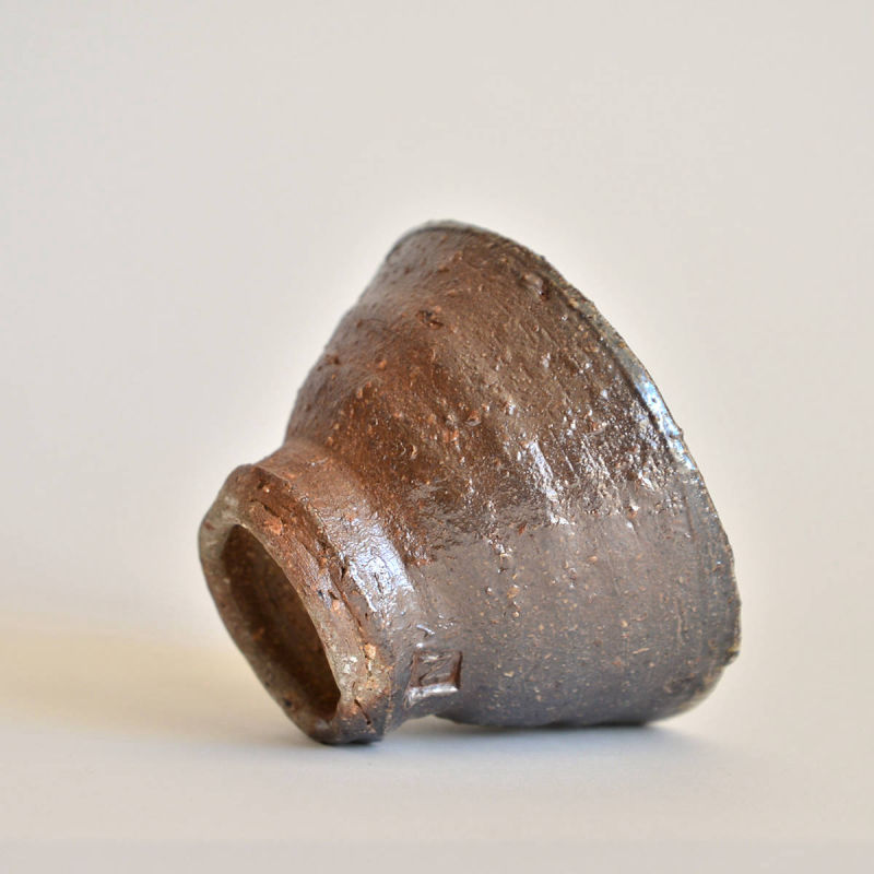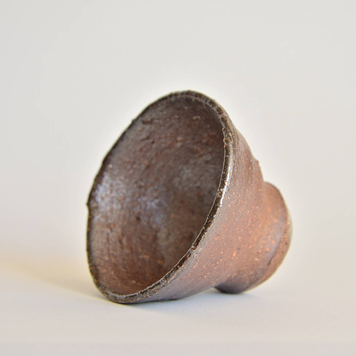 wheel thrownmix of several types of clay.painted with fire and natural ash glazed in woodfired kiln. 1320 st. C dimensions: ⌀ 9 cm; h 5,5 cm capacity: 100 ml