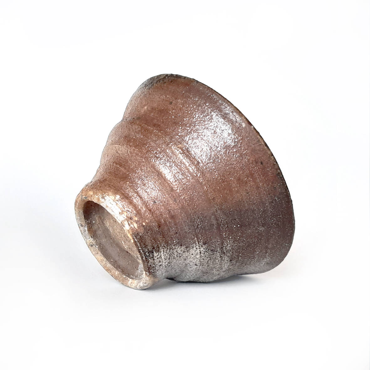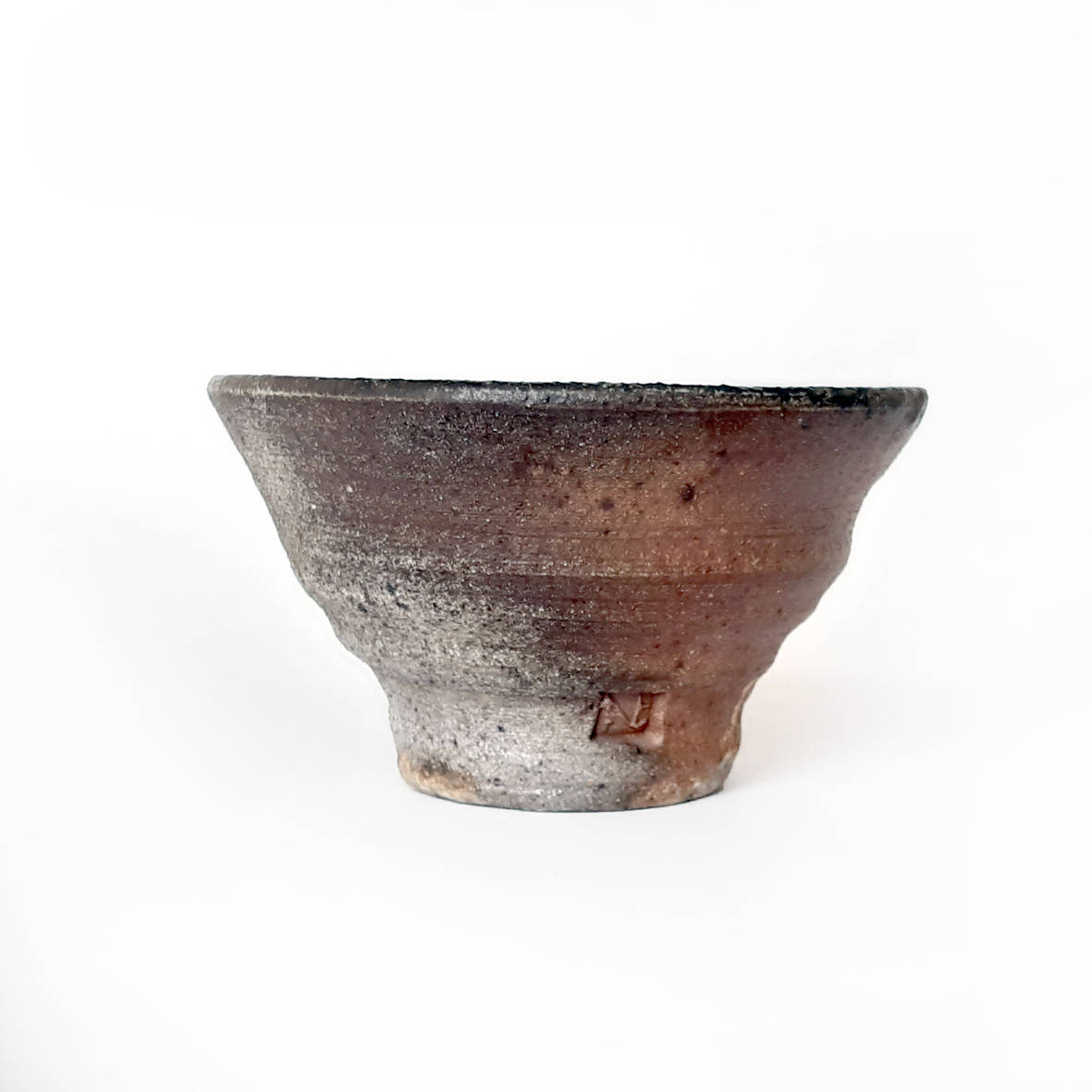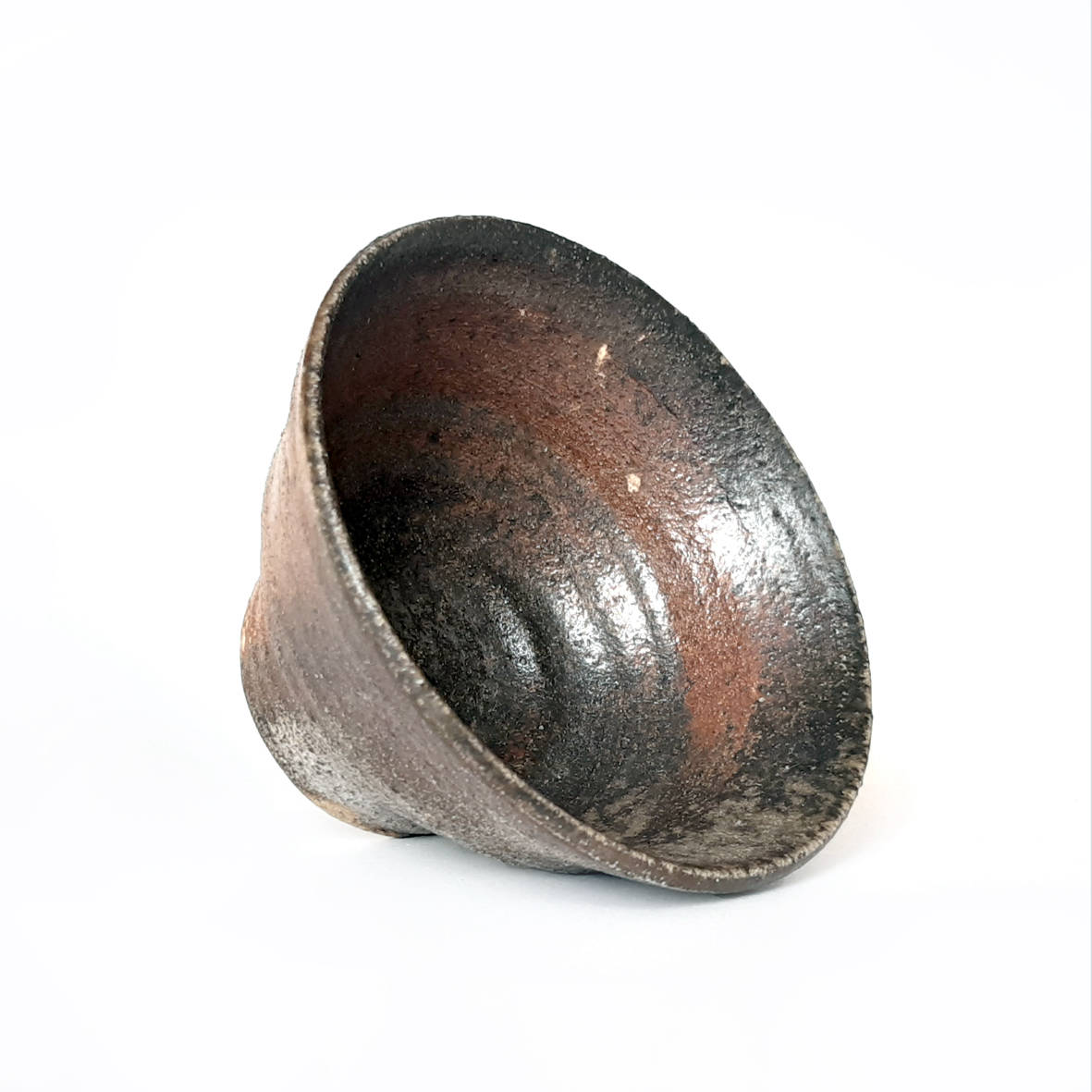 wheel thrown small tea bowl, mix of several types of clay,painted with fire and natural ash glaze in a wood fired kiln. temp. 1350 st. C dimensions: ⌀ 10 cm; h 5,6 cm capacity: 150 ml