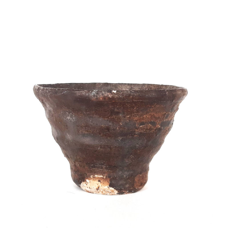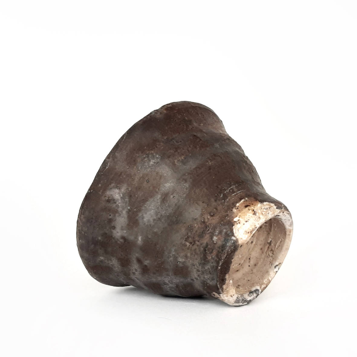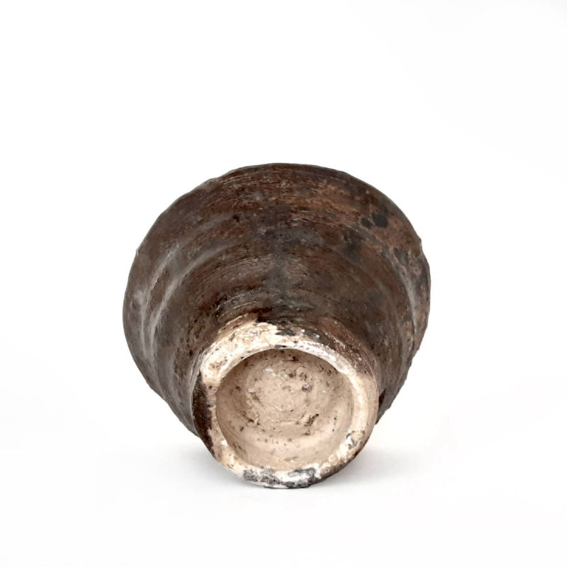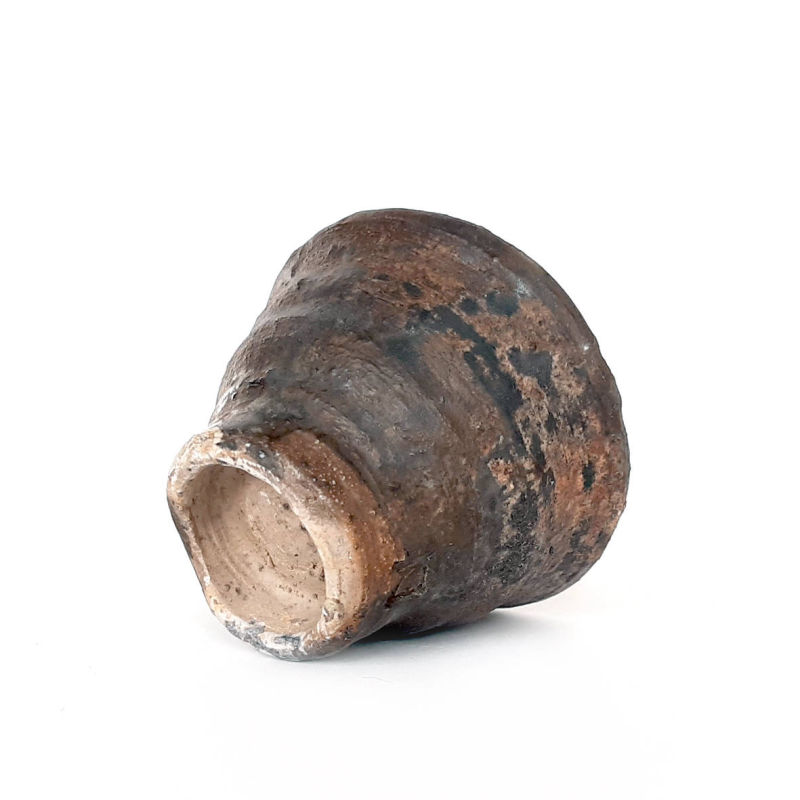 wheel thrown small tea bowl, mix of several types of clay,painted with fire and natural ash glaze on white engobe in a wood fired kiln. temp. 1350 st. C dimensions: ⌀ 8 cm; h 5,5 cm capacity: 100 ml