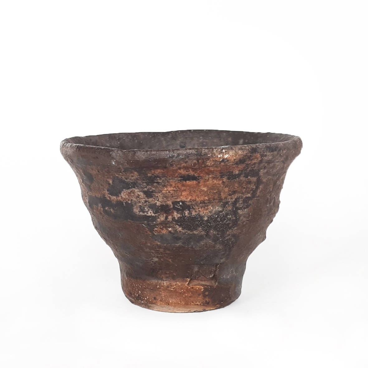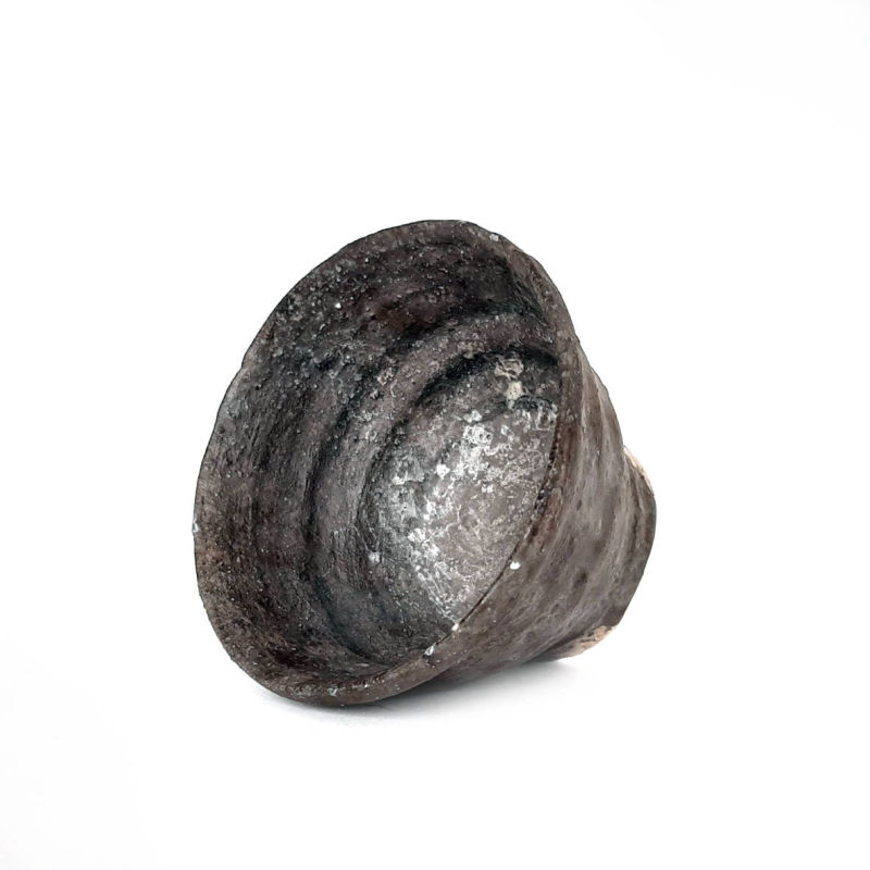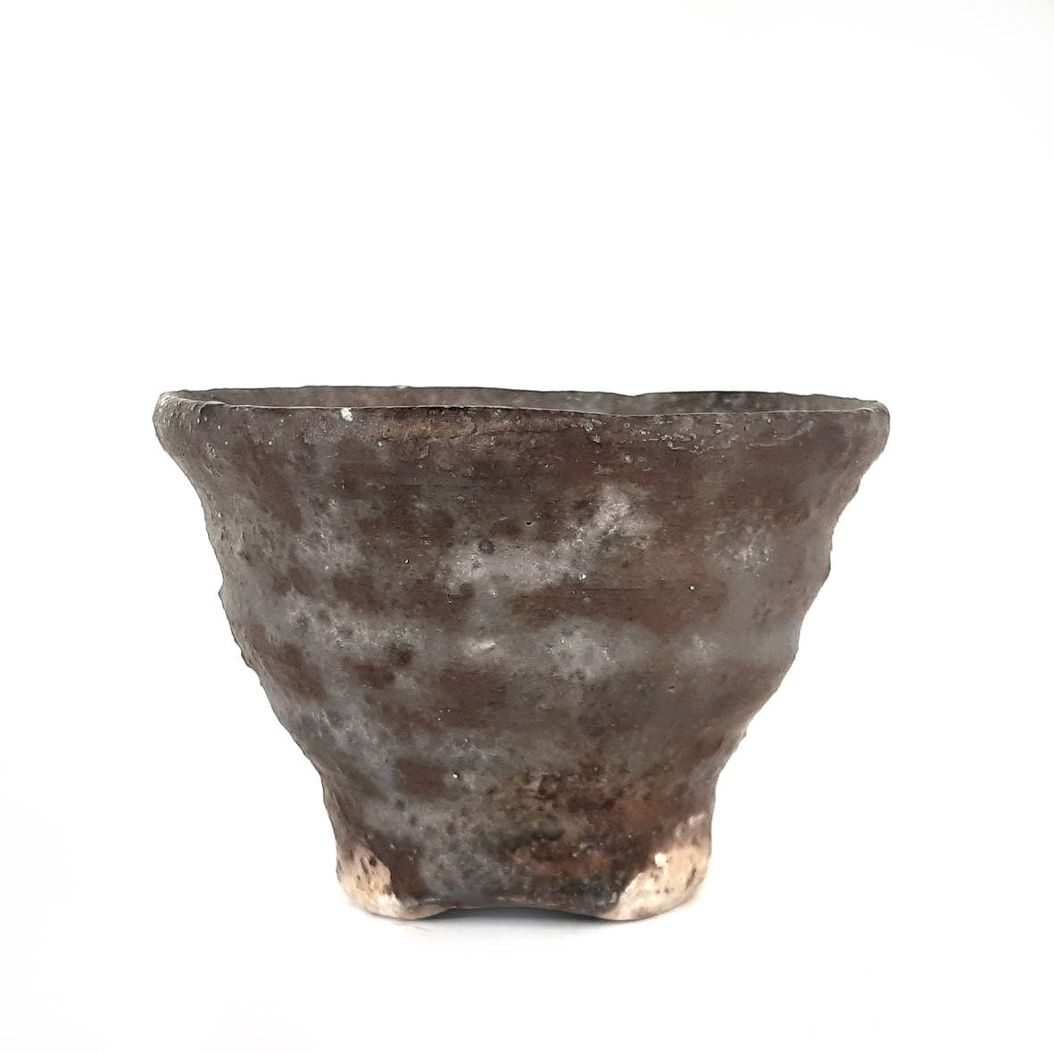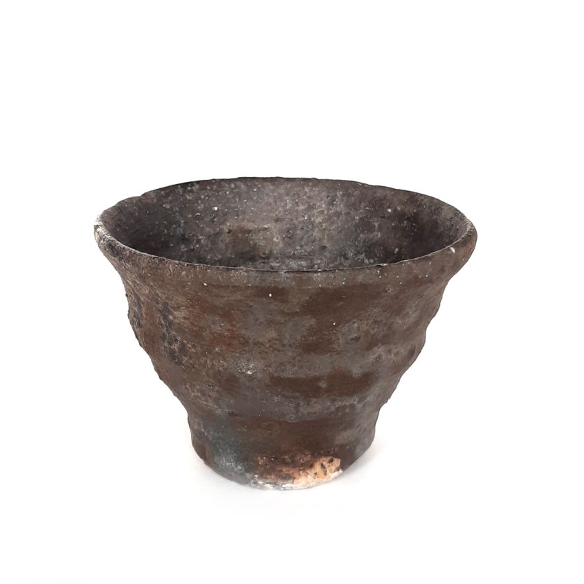 wheel thrown small tea bowl, mix of several types of clay,painted with fire and natural ash glaze on white engobe in a wood fired kiln. temp. 1350 st. C dimensions: ⌀ 8 cm; h 5,5 cm capacity: 100 ml