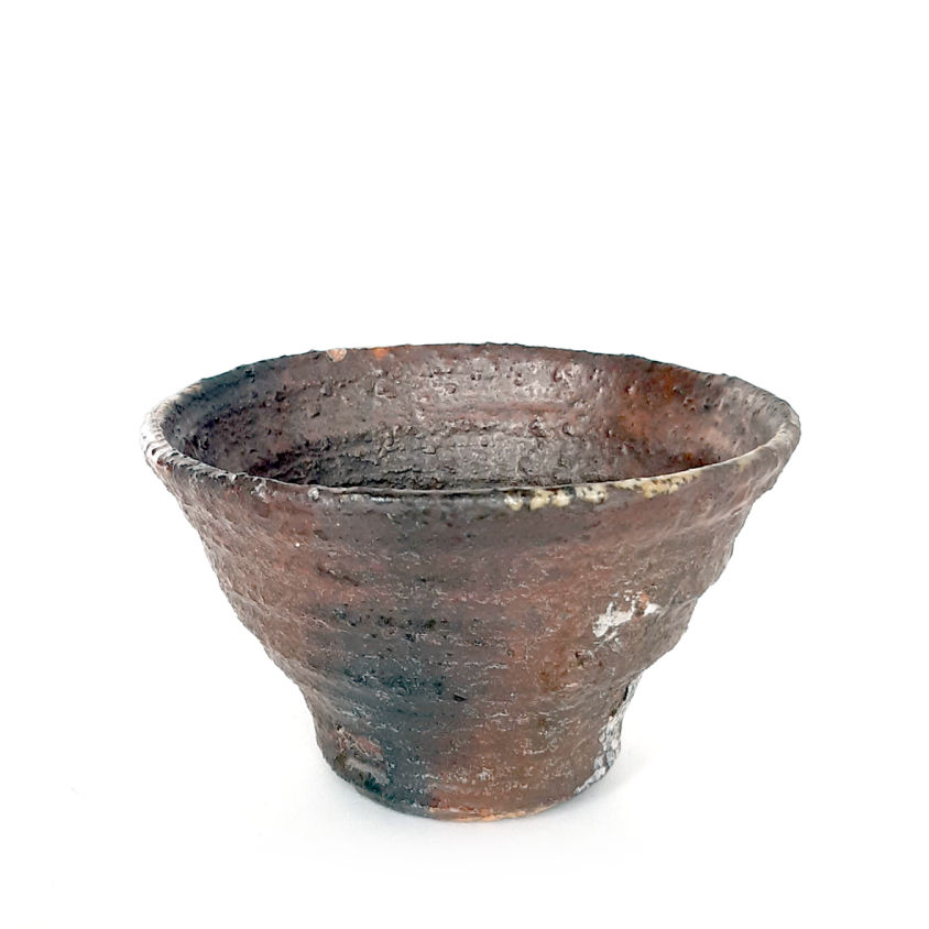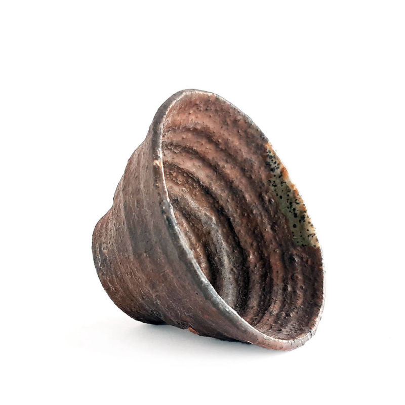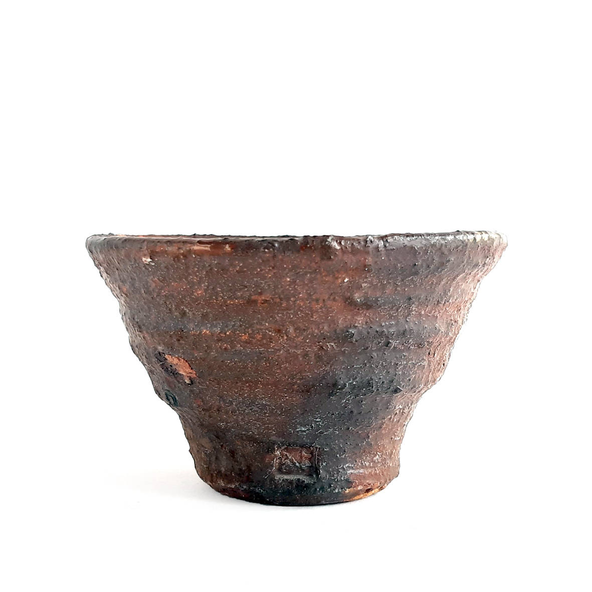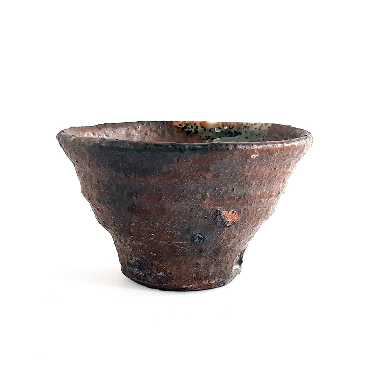 wheel thrown small tea bowl, mix of several types of clay , painted with fire and natural ash glaze in a wood fired kiln.temp. 1350 st. C dimensions: ⌀ 9,2 cm; h 5,6 cm capacity: 150 ml