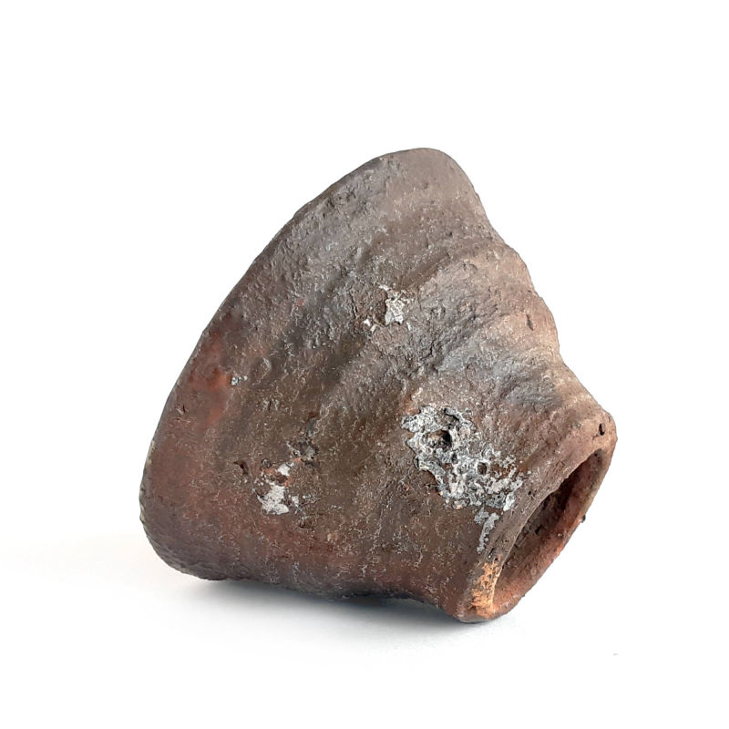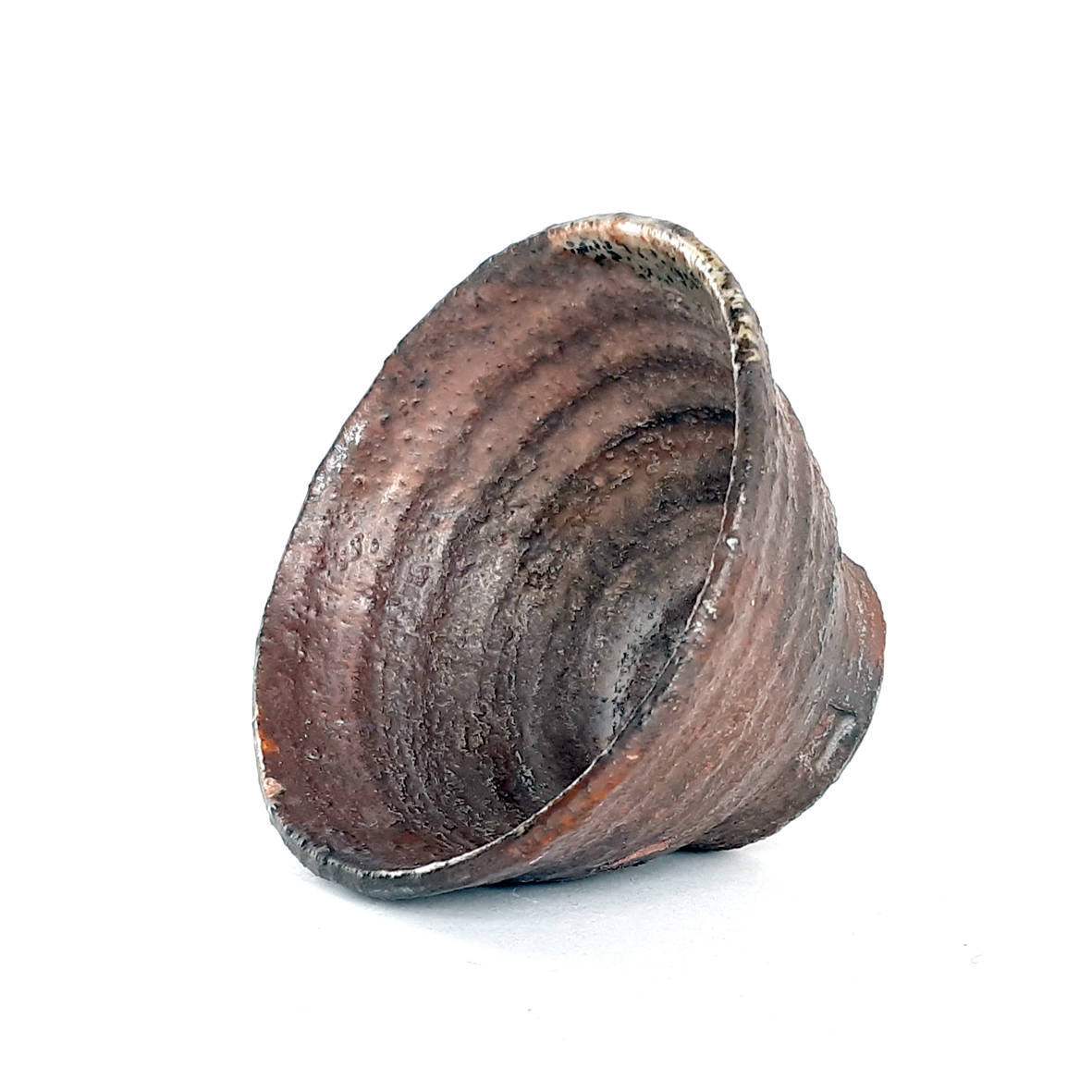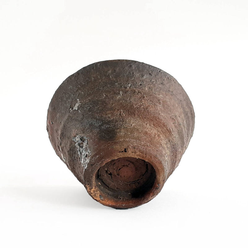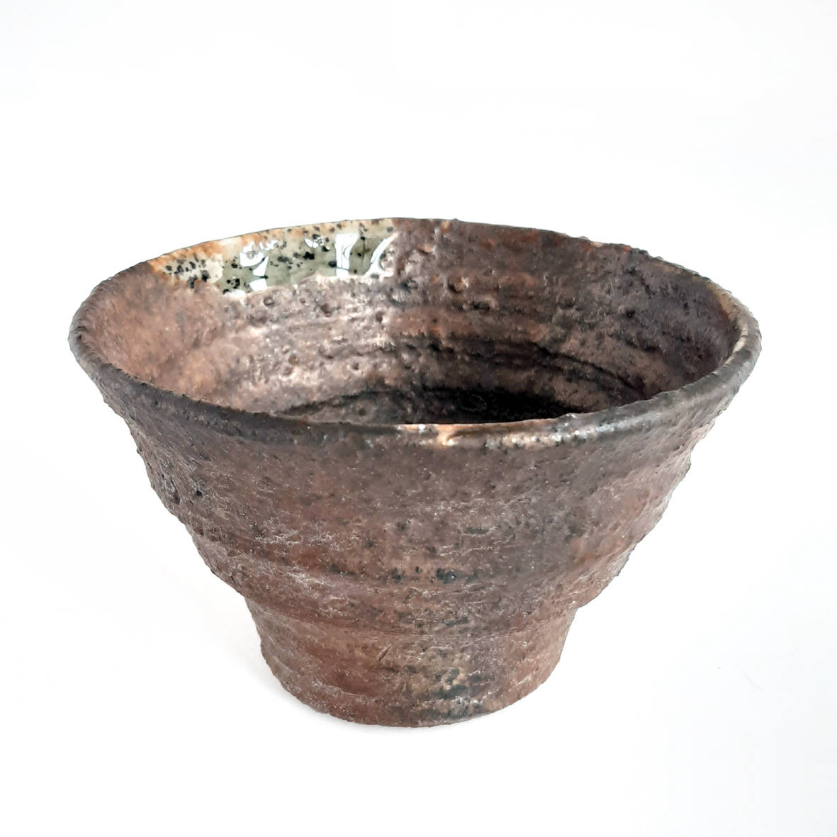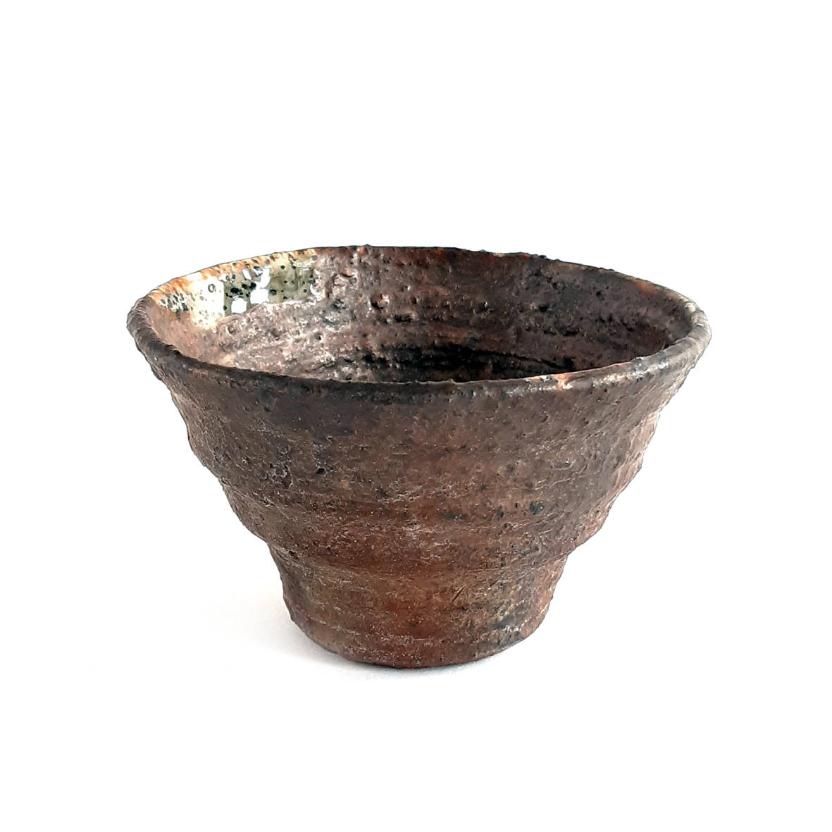 wheel thrown small tea bowl, mix of several types of clay , painted with fire and natural ash glaze in a wood fired kiln.temp. 1350 st. C dimensions: ⌀ 9,2 cm; h 5,6 cm capacity: 150 ml