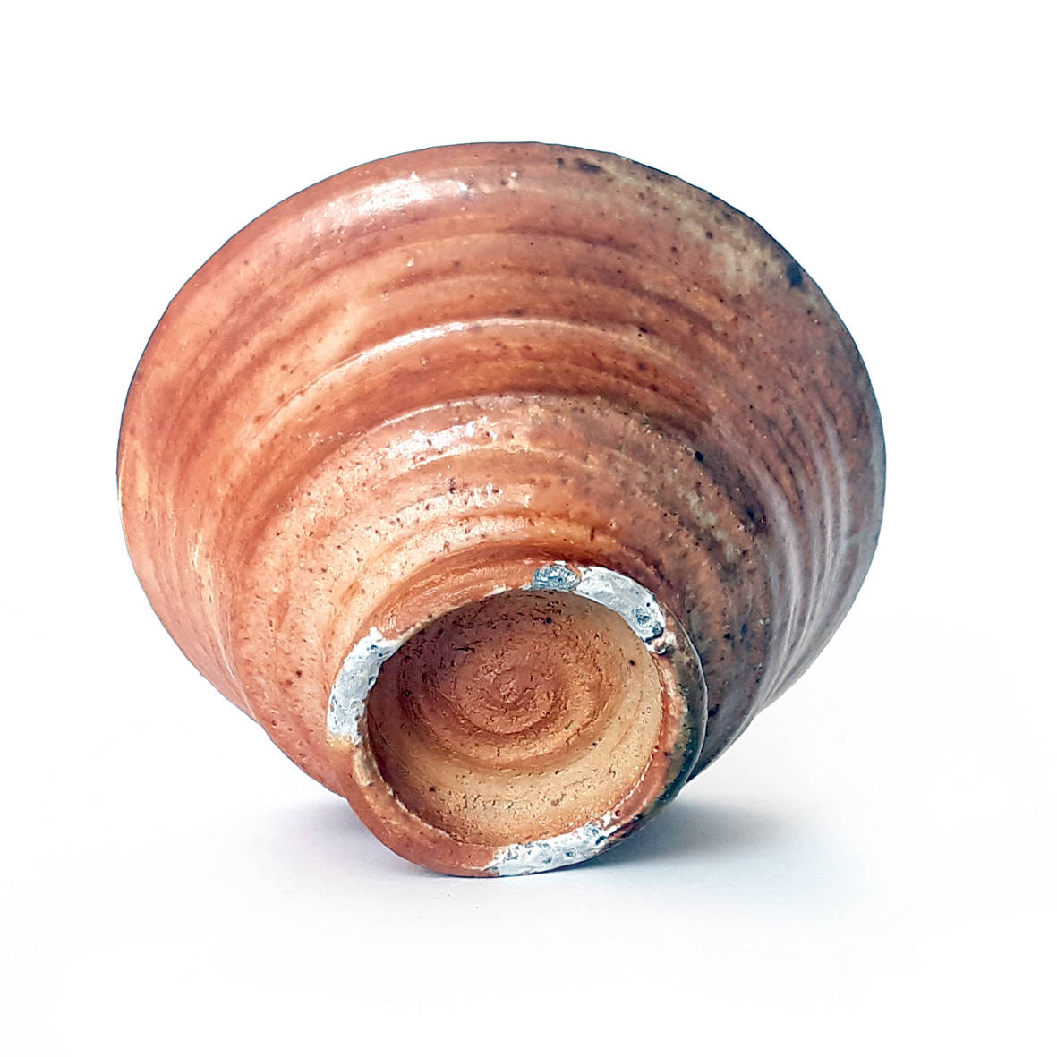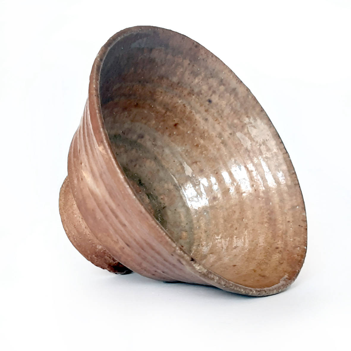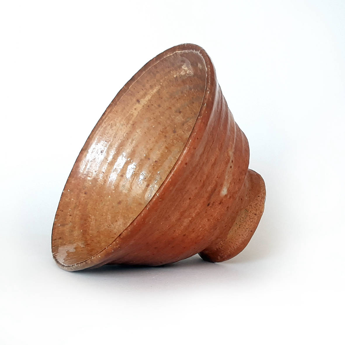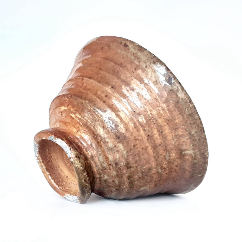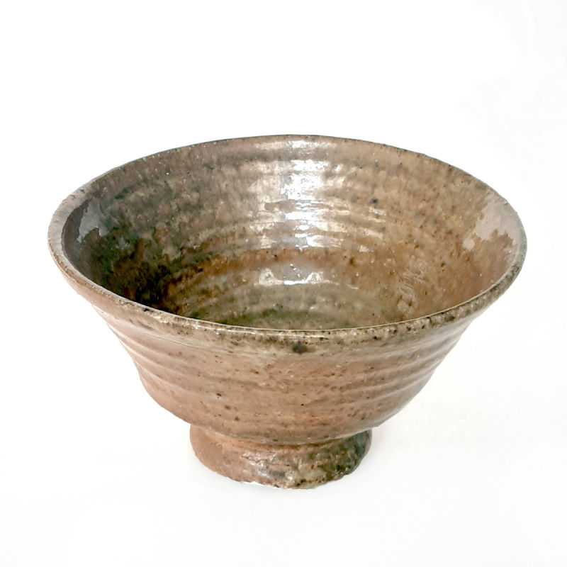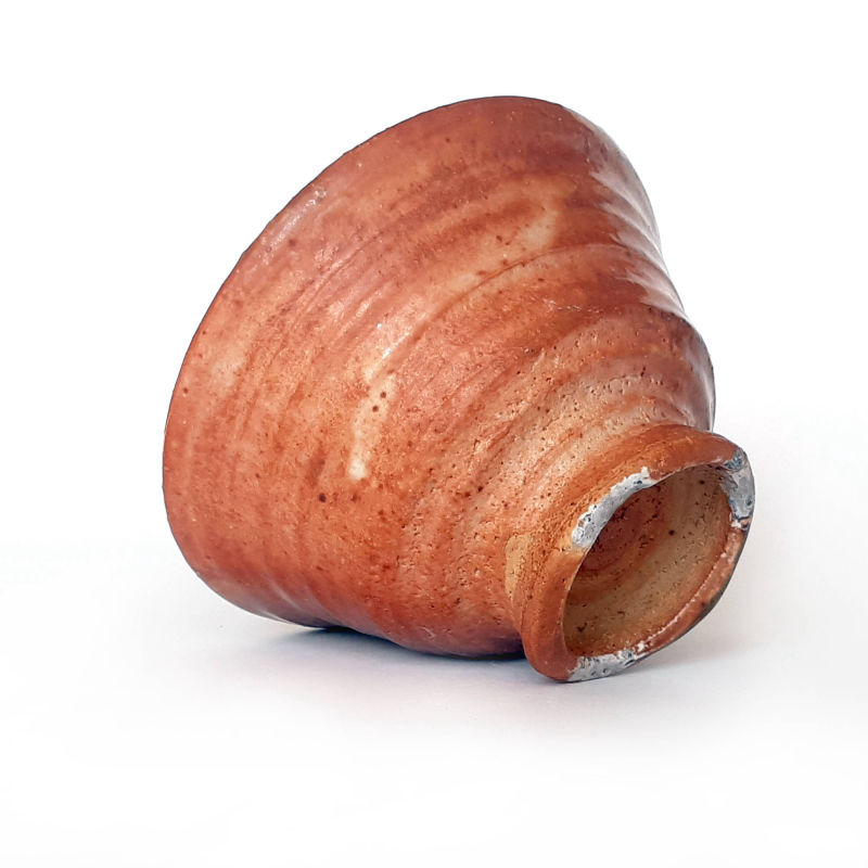 wheel thrown big goblet bowl, mix of several types of clay,painted with fire and natural ash glaze in a wood fired kiln.temp. 1350 st. C dimensions: ⌀ 15 cm; h 8,5 cm capacity: 0,4 l